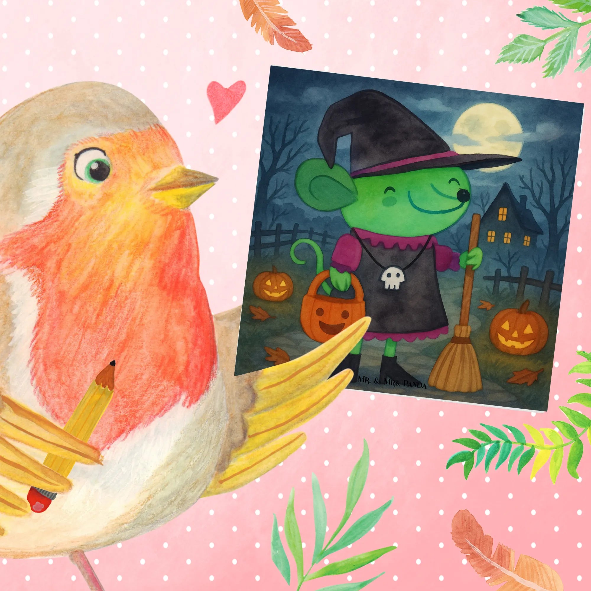 Meet our magical Mouse Witch, a delightful sight that will warm your heart! This cheerful green mouse is clad in a beautiful black dress, embellished with a cheeky white skull, and topped off with a classic witch hat. She carries an orange pumpkin basket overflowing with goodies, and in her other hand, she wields a broom, ready for her nightly escapades. Picture her zooming through the starry sky, spreading happiness and a sprinkle of mischief! This motif is not just a decoration; it’s a celebration of the joy and fun of Halloween. Perfect for adding a splash of whimsy to your living space or gifting it to someone who loves all things spooky yet sweet. Let this enchanting Mouse Witch bring a little extra magic to your life!