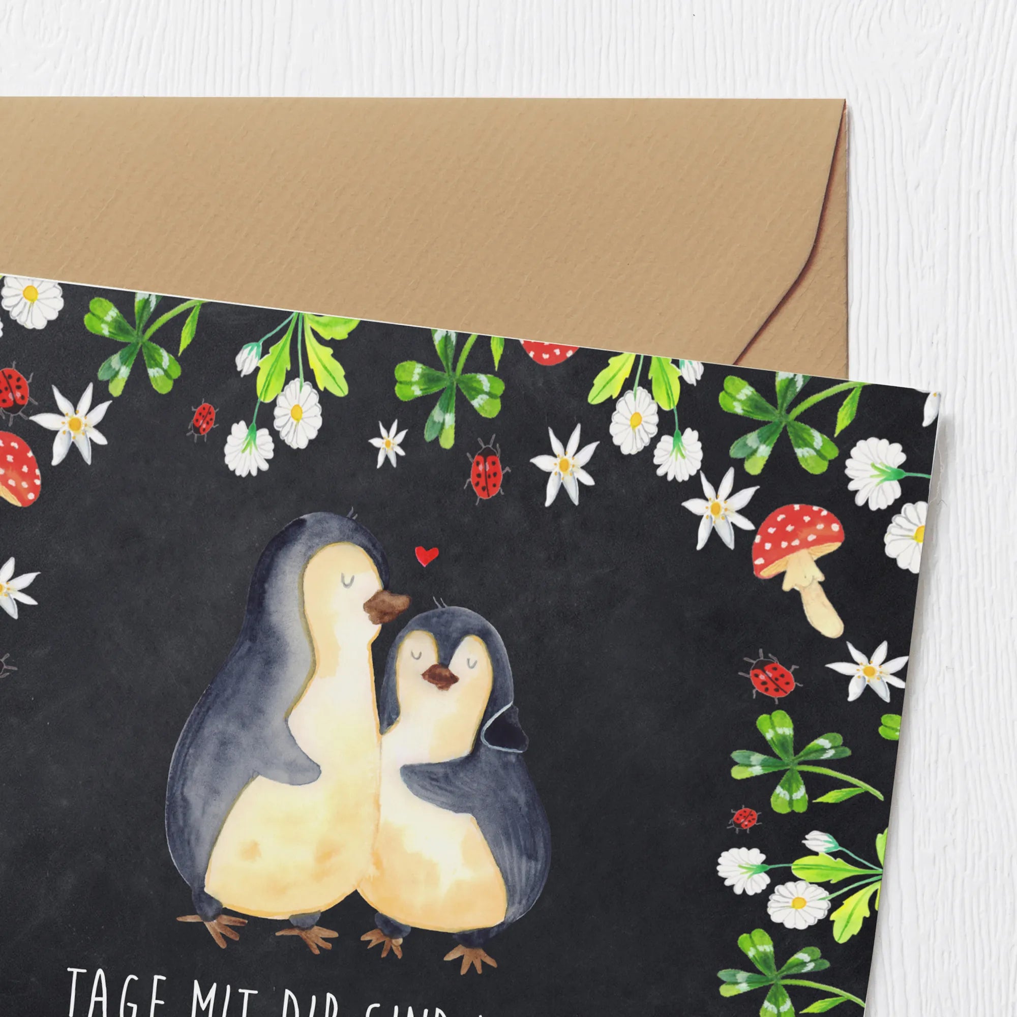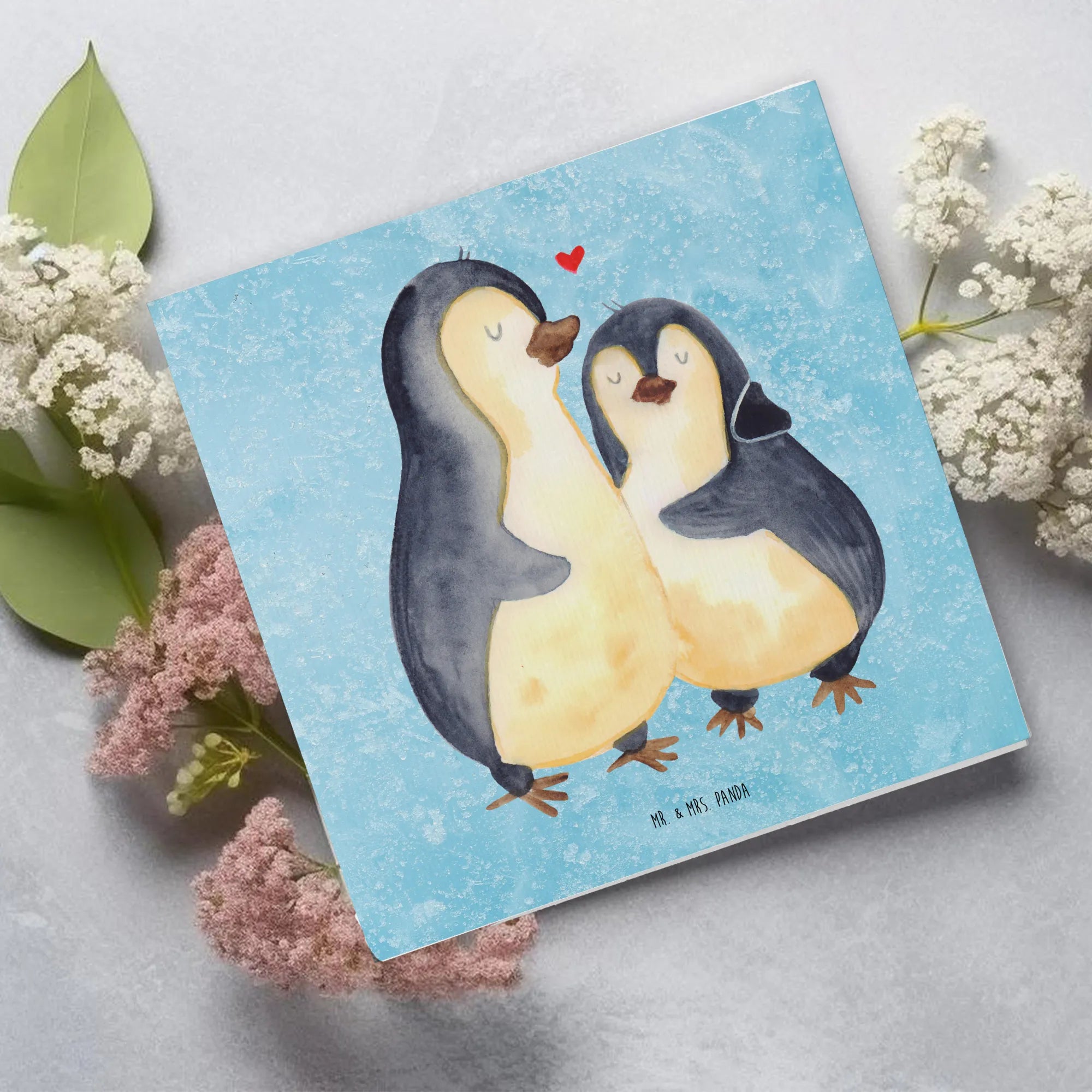 Deluxe Card Penguin embrace - with saying - Ice Blue