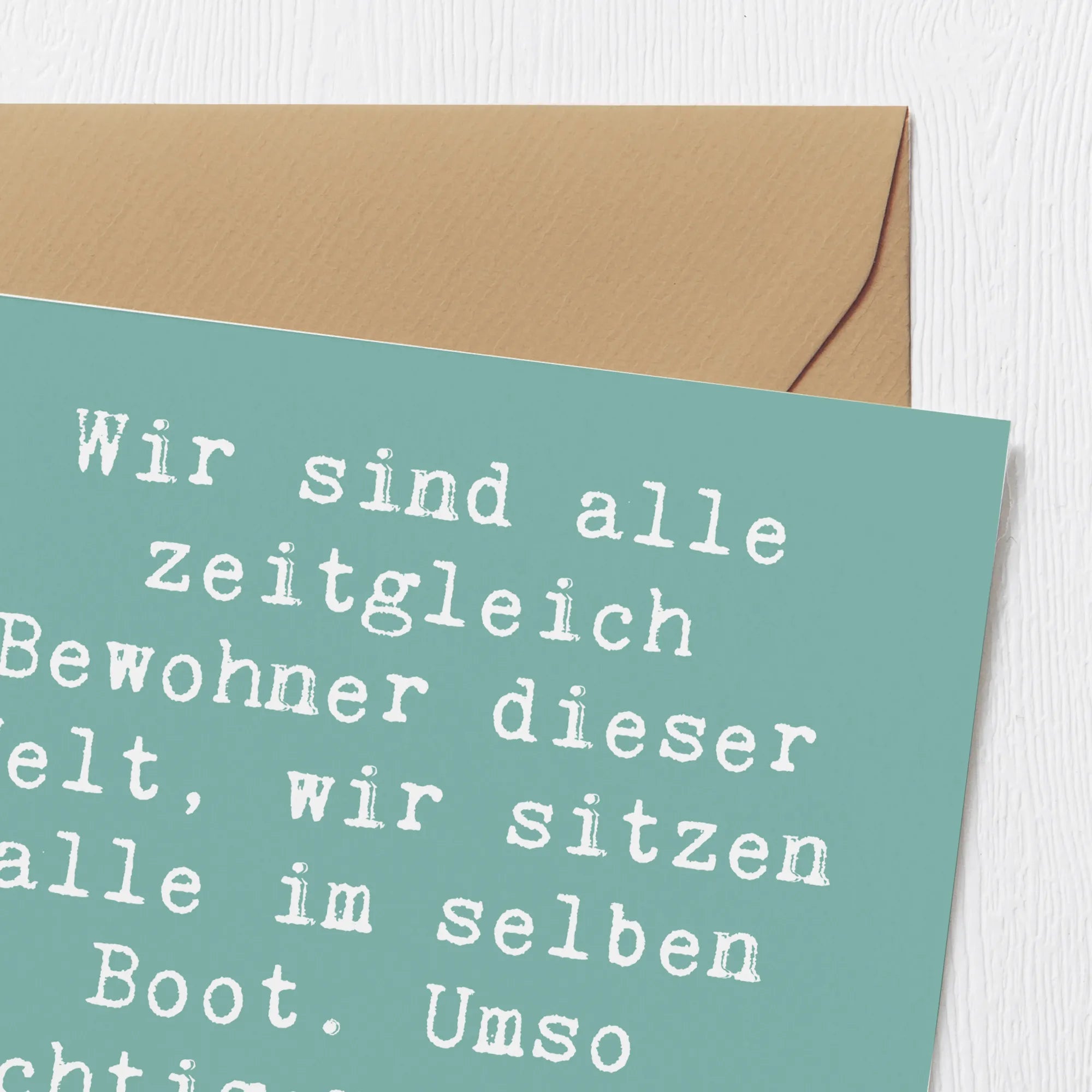 Deluxe Card Saying Wir sind alle zeitgleich Bewohner dieser Welt, wir sitzen alle im selben Boot. Umso wichtiger ist es, dass wir zusammen halten. - Sea Breeze