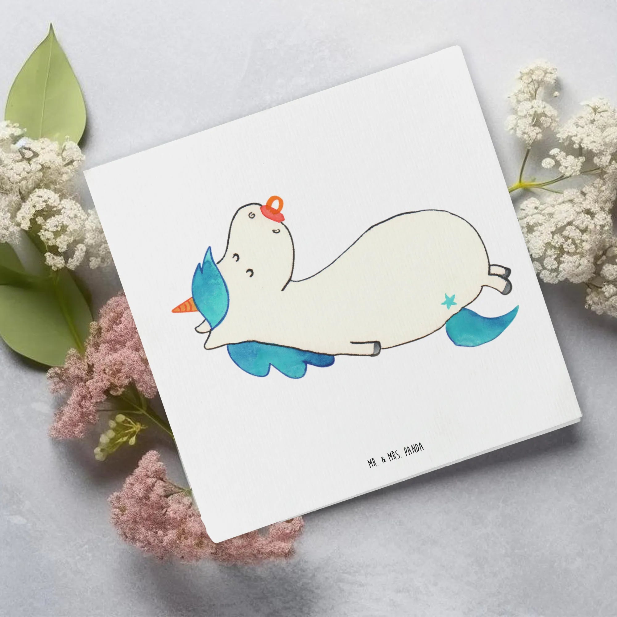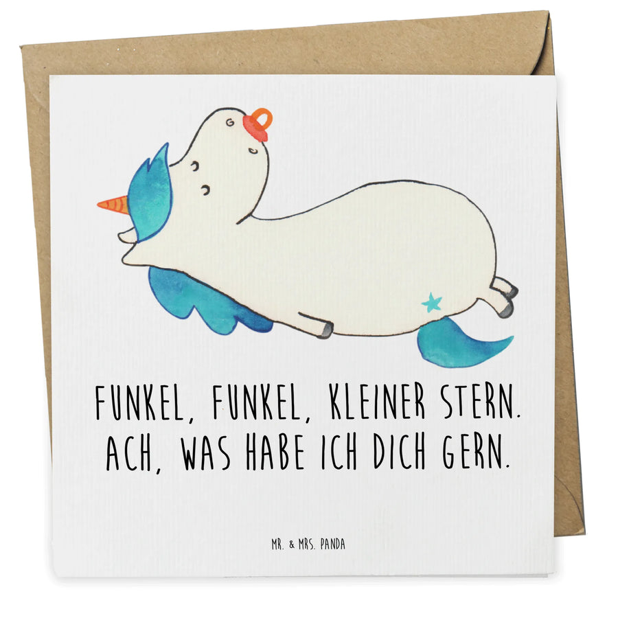 Are you looking for the perfect card to celebrate a new life? Our Deluxe Card from Mr. & Mrs. Panda featuring an adorable Unicorn Dummy is just what you need! This lovely card captures the enchanting essence of a baby unicorn contently sleeping with a pacifier in its mouth, making every occasion feel extra special. Measuring a charming 140 mm x 140 mm, this high-quality greeting card is perfect for welcoming newborns and celebrating the joyous birth of a child.