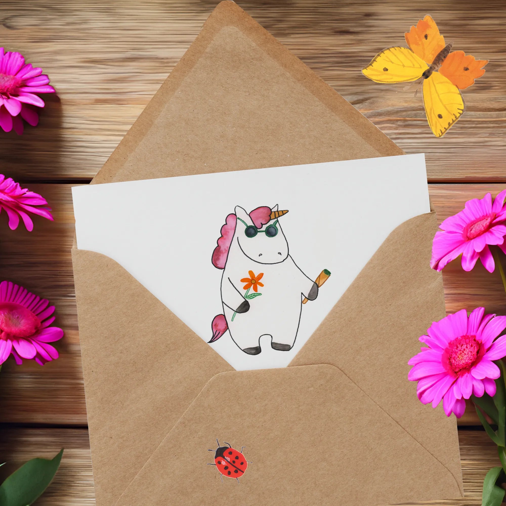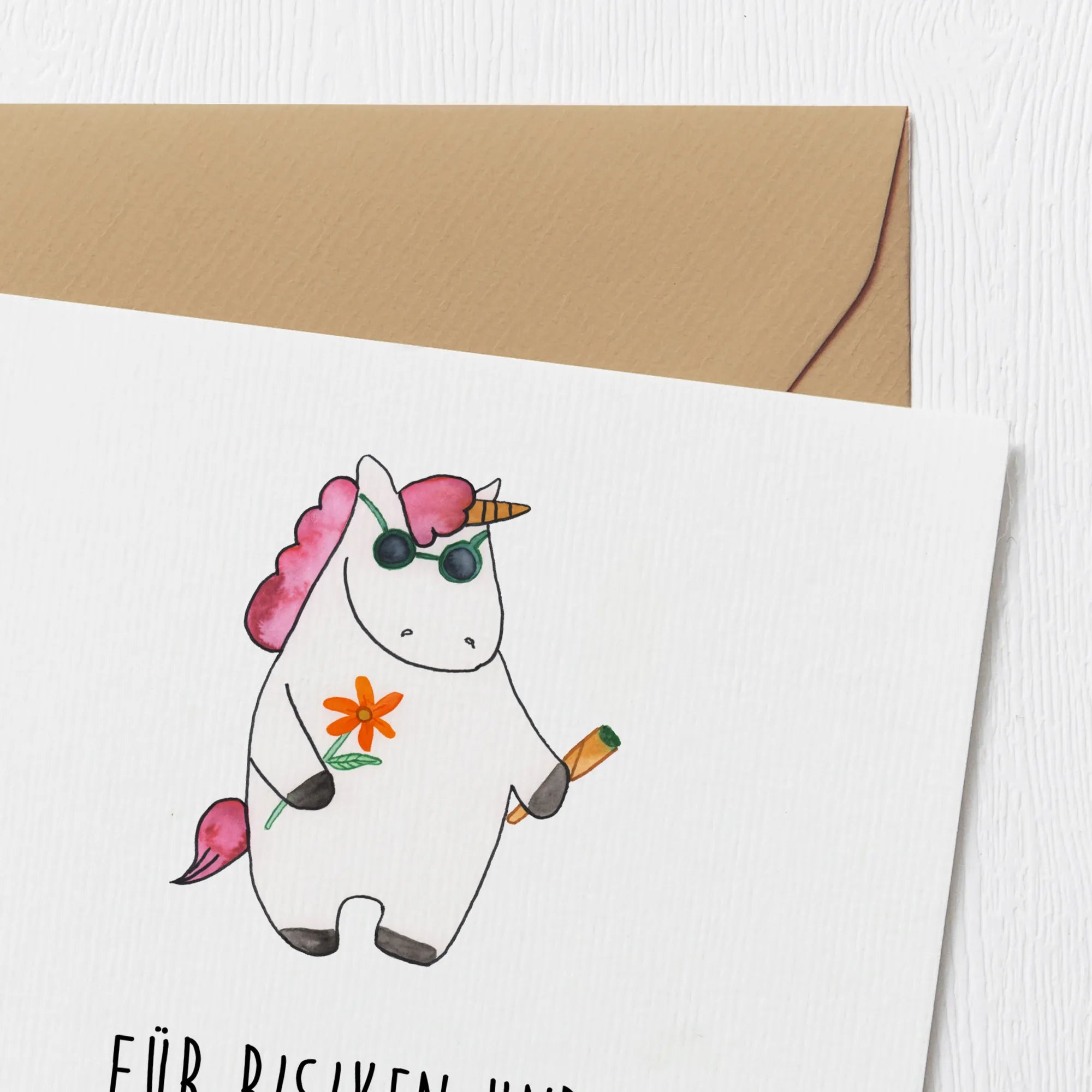Imagine the joy on your friend's face when they receive this splendid card adorned with a whimsical unicorn wearing sunglasses and holding a joint. Its playful slogan, "Für Risiken und Nebenwirkungen fragen Sie das Einhorn, " tickles the funny bone, making it an excellent gift for those who appreciate a good laugh! It’s perfect for party invitations, birthday greetings, or simply to lift someone’s spirits with a touch of fun. The Woodstock Unicorn embodies a carefree spirit, celebrating life and joy as it has danced through festivals and enjoyed tranquil evenings under starry skies. This card is not just a beautiful design; it carries with it the warm vibes of friendship and happiness.