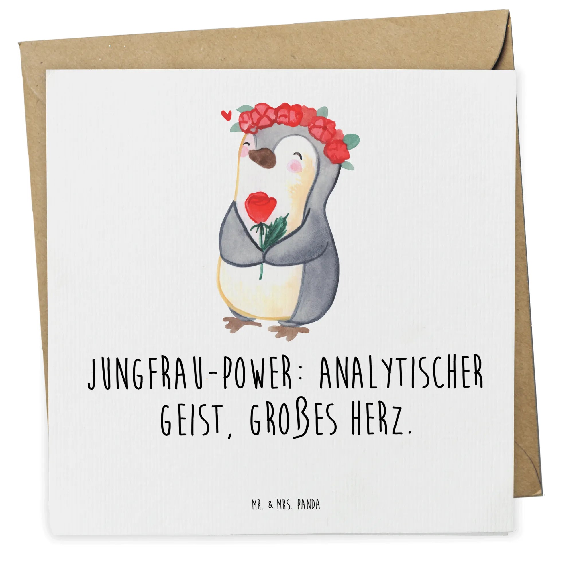 Imagine the joy on the face of your friend, sister, or mother when she receives this charming card featuring a sweet penguin adorned with a floral crown. This little mascot, complete with a lovely flower in its flipper, embodies the nurturing heart and analytical mind characteristic of Virgos, making it the perfect card for birthdays, congratulations, and other celebratory moments.