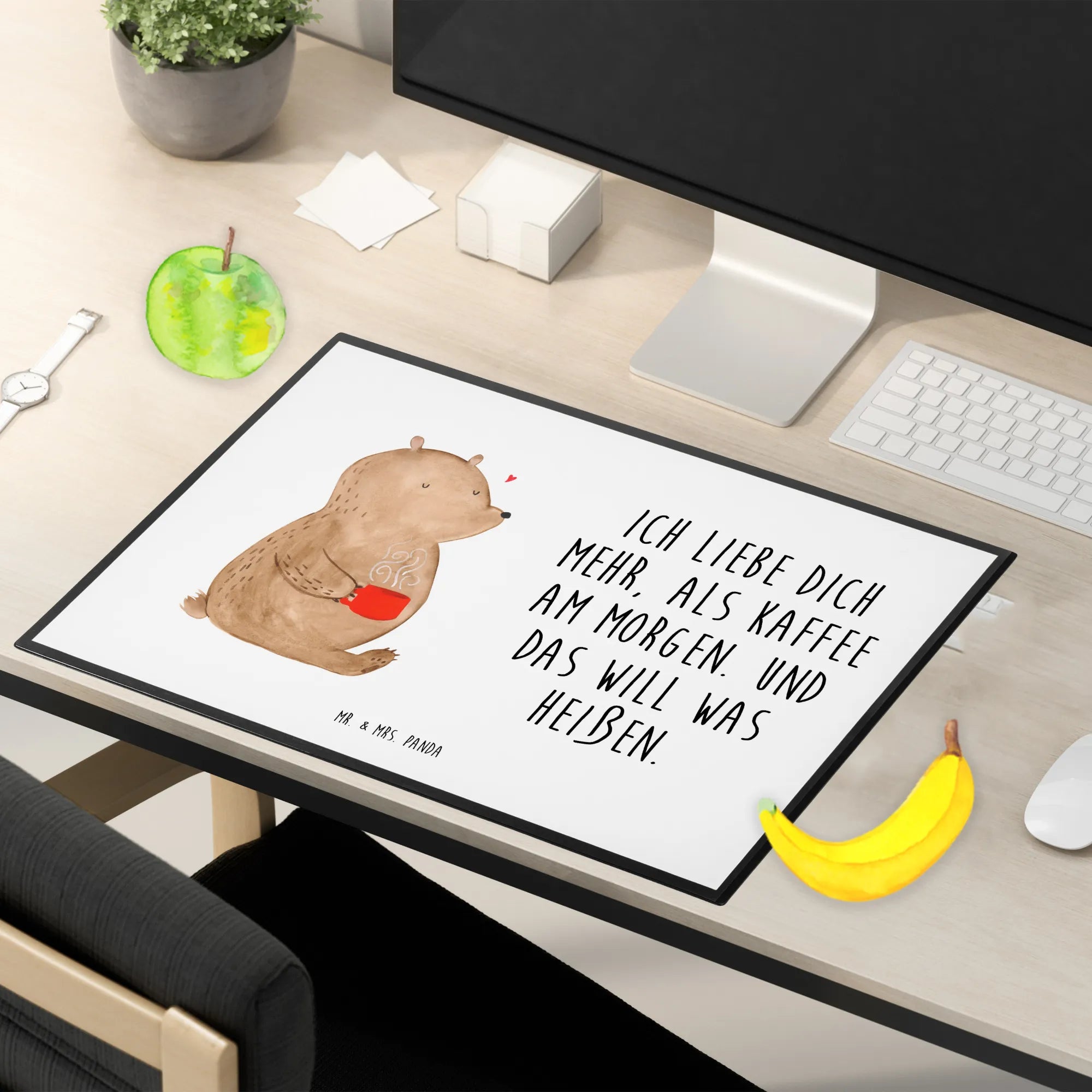 Desk pad bear morning coffee - White