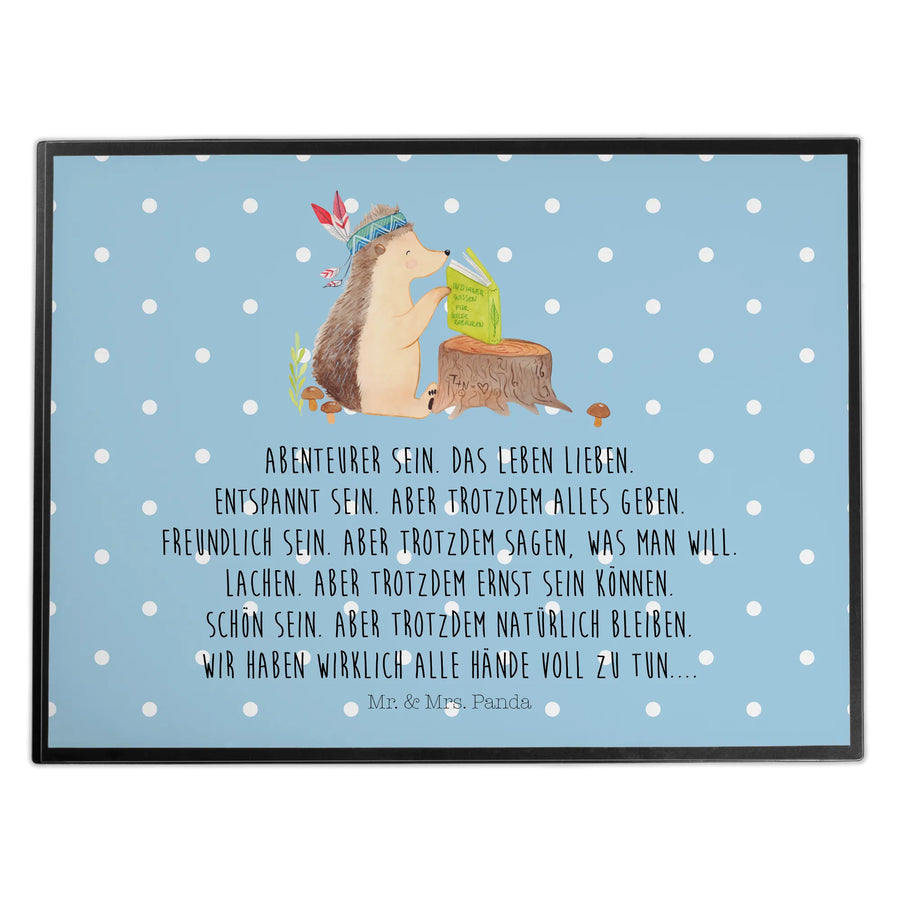 Desk pad Hedgehog feather headdress - with saying - Pastel Blue