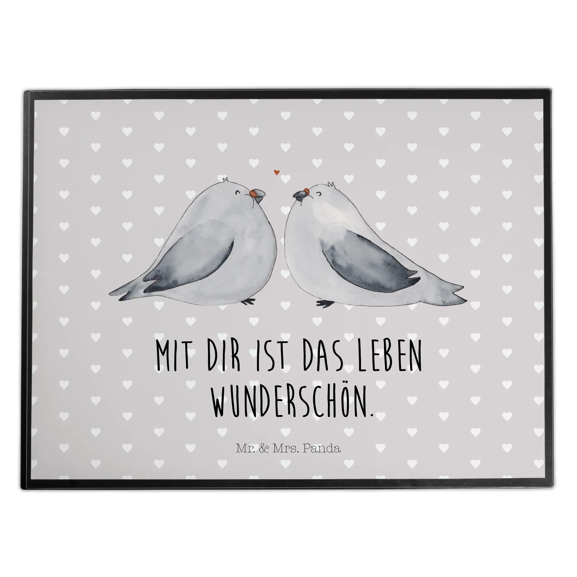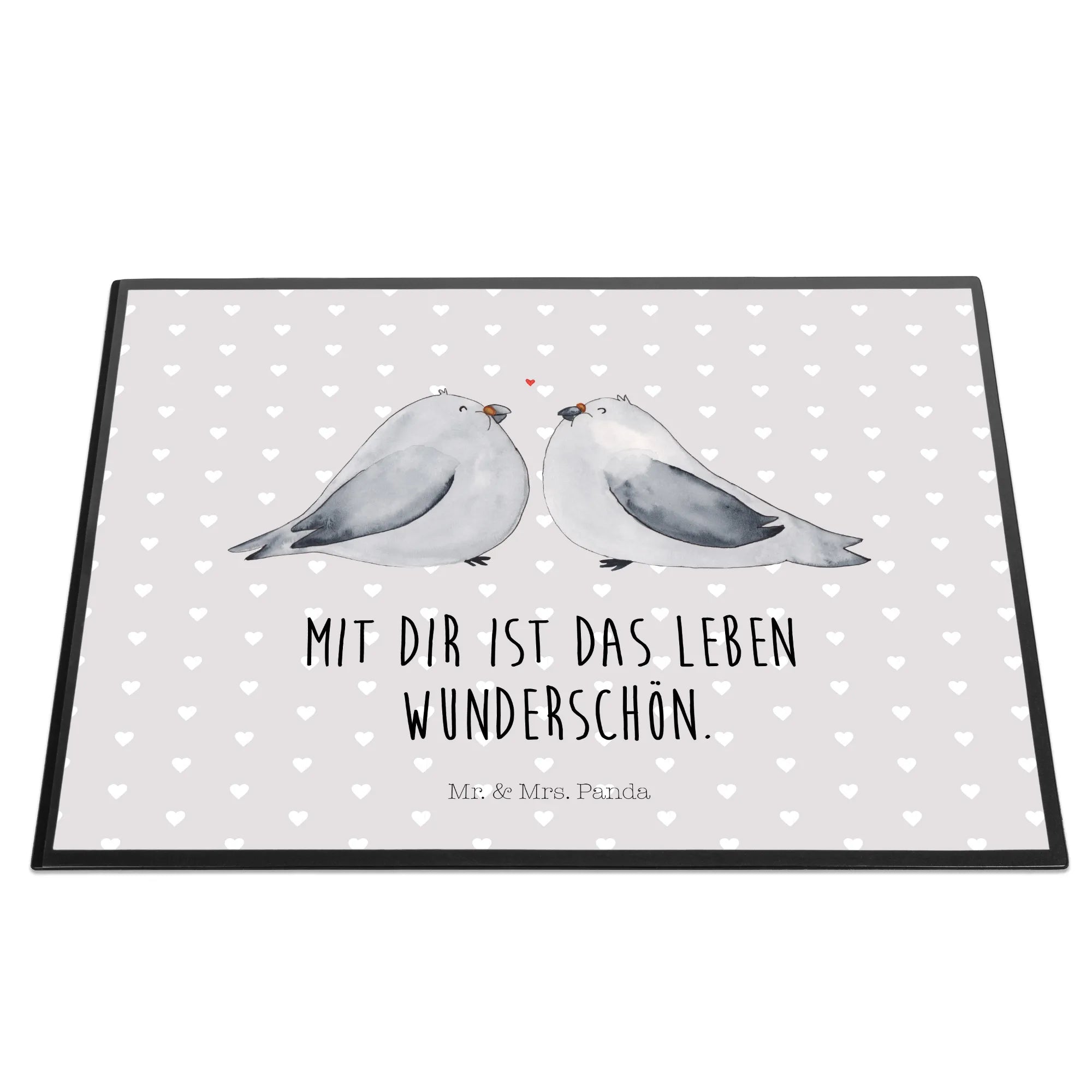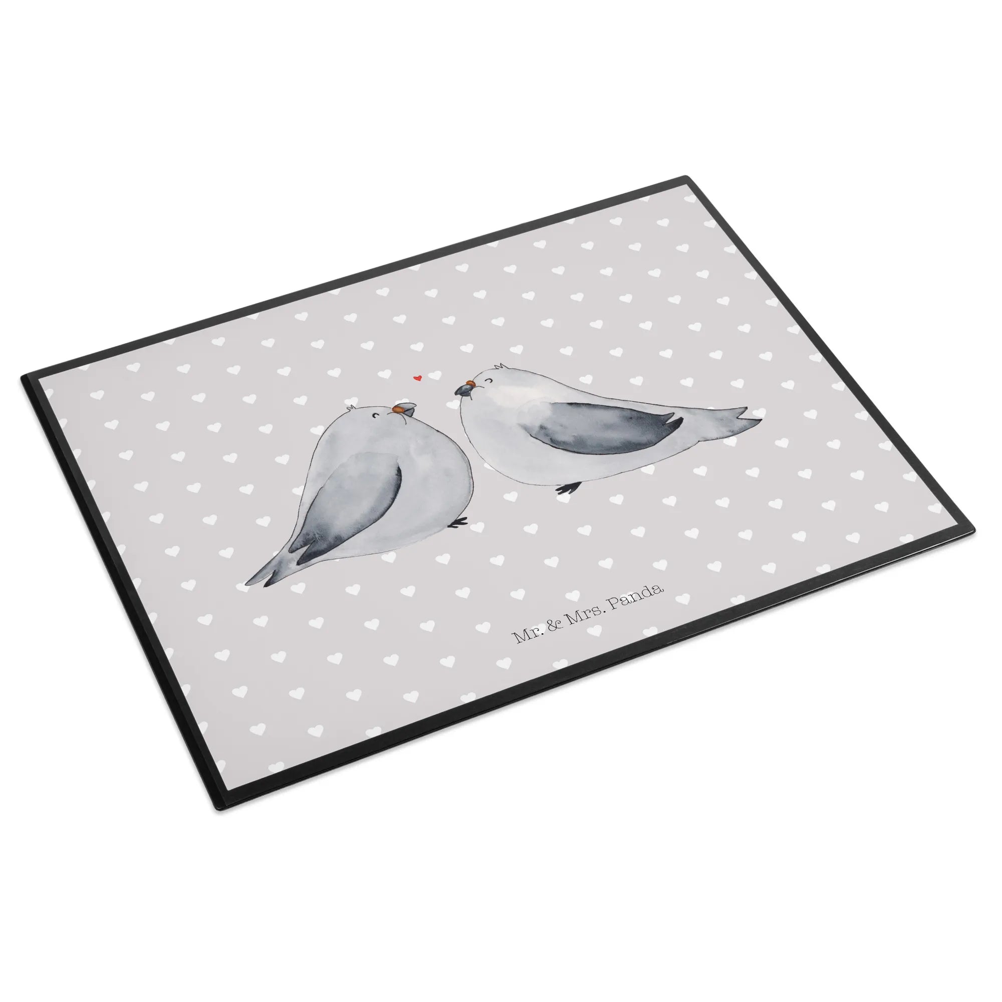 Desk pad Turtledoves in love - with saying - Pastel Gray
