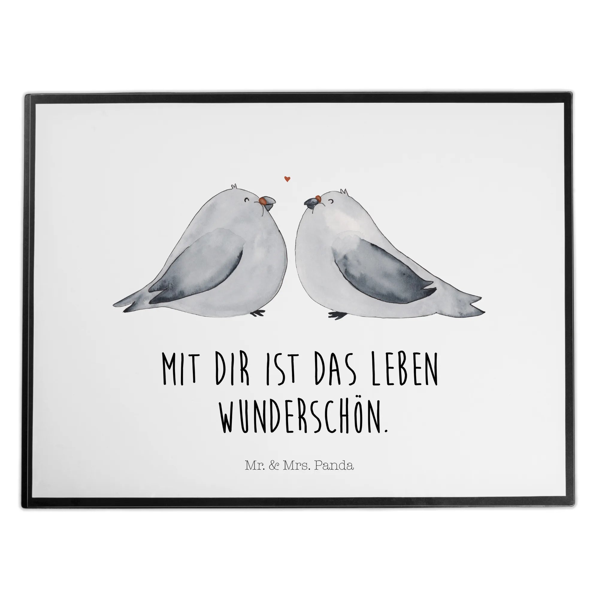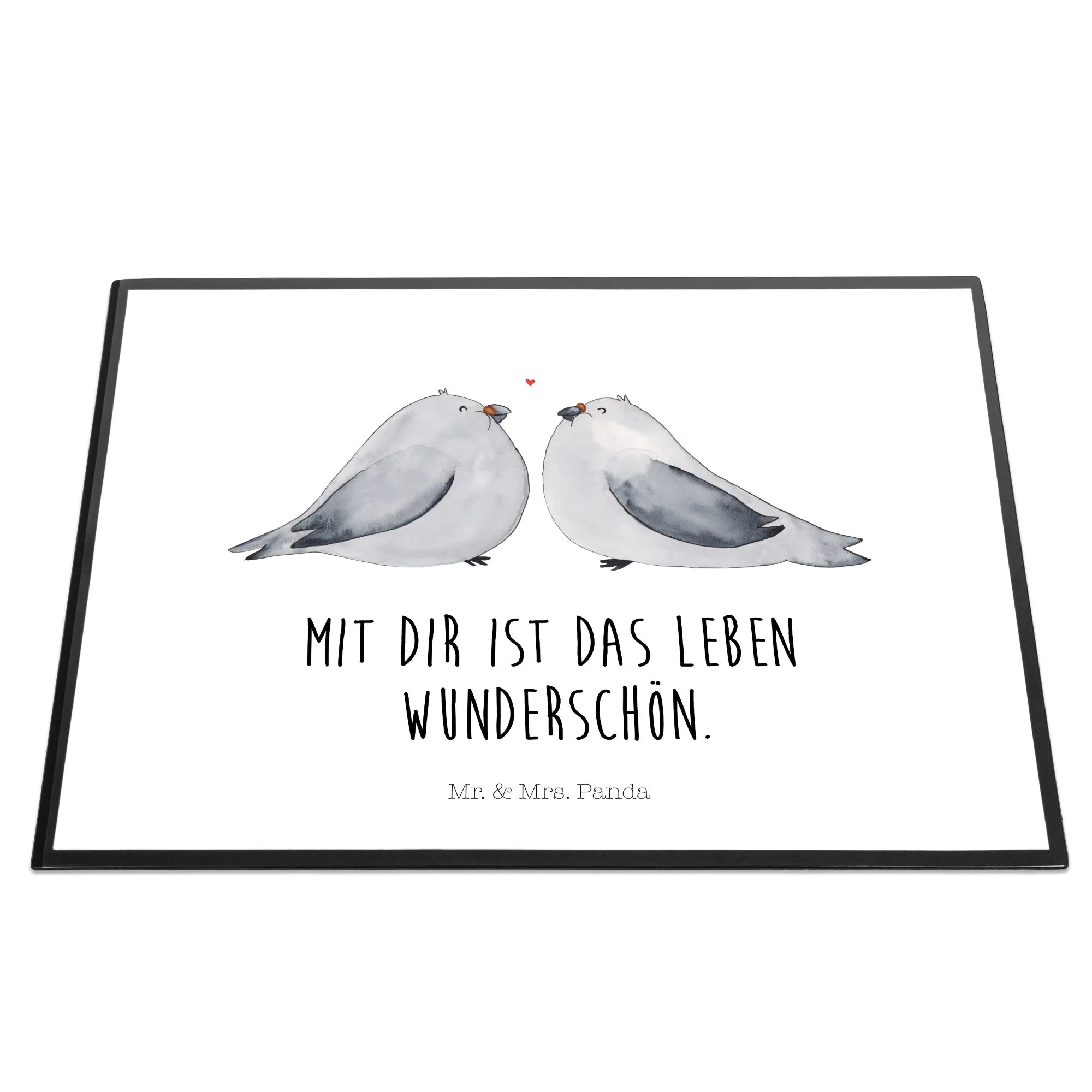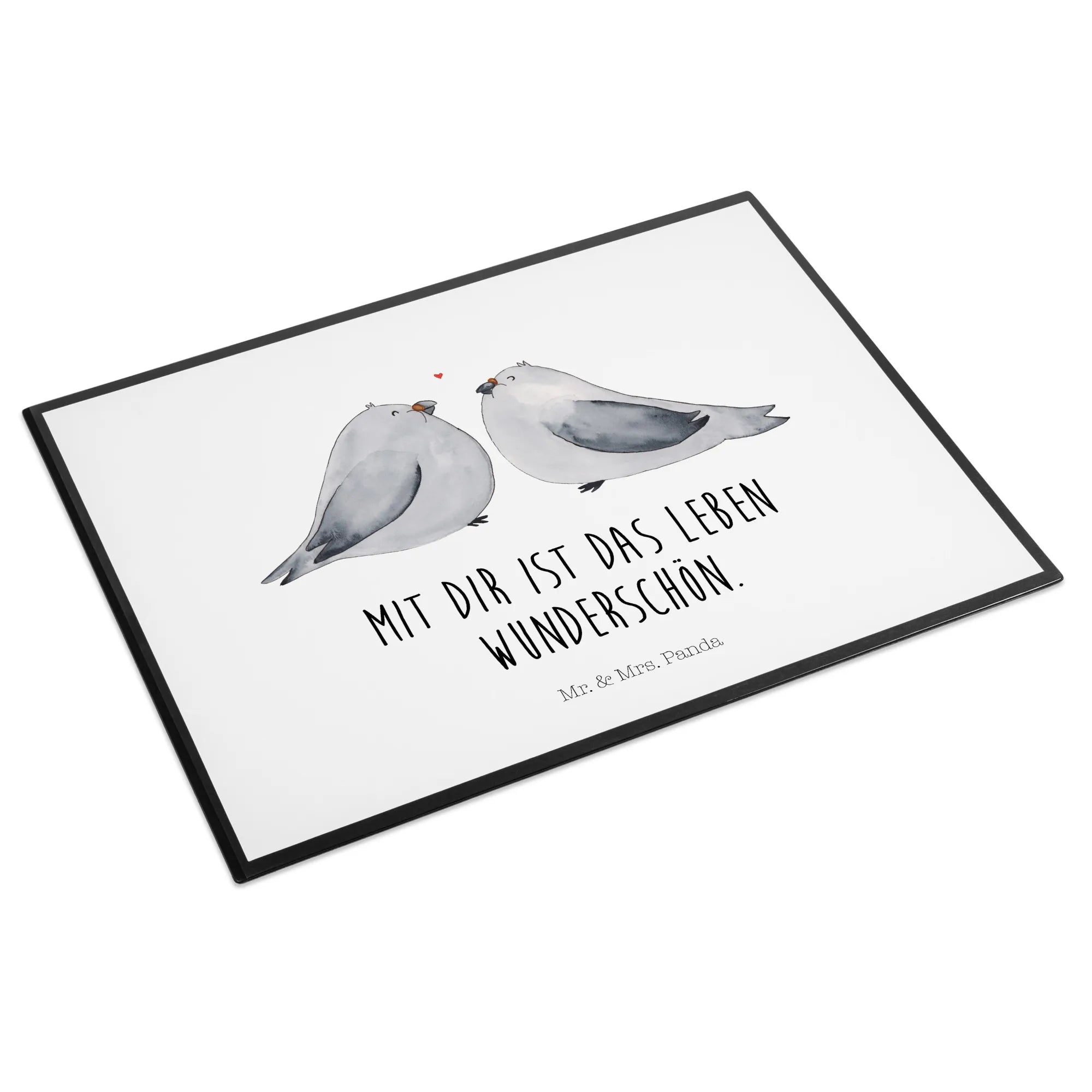 Desk pad Turtledoves in love - with saying - Pastel Gray