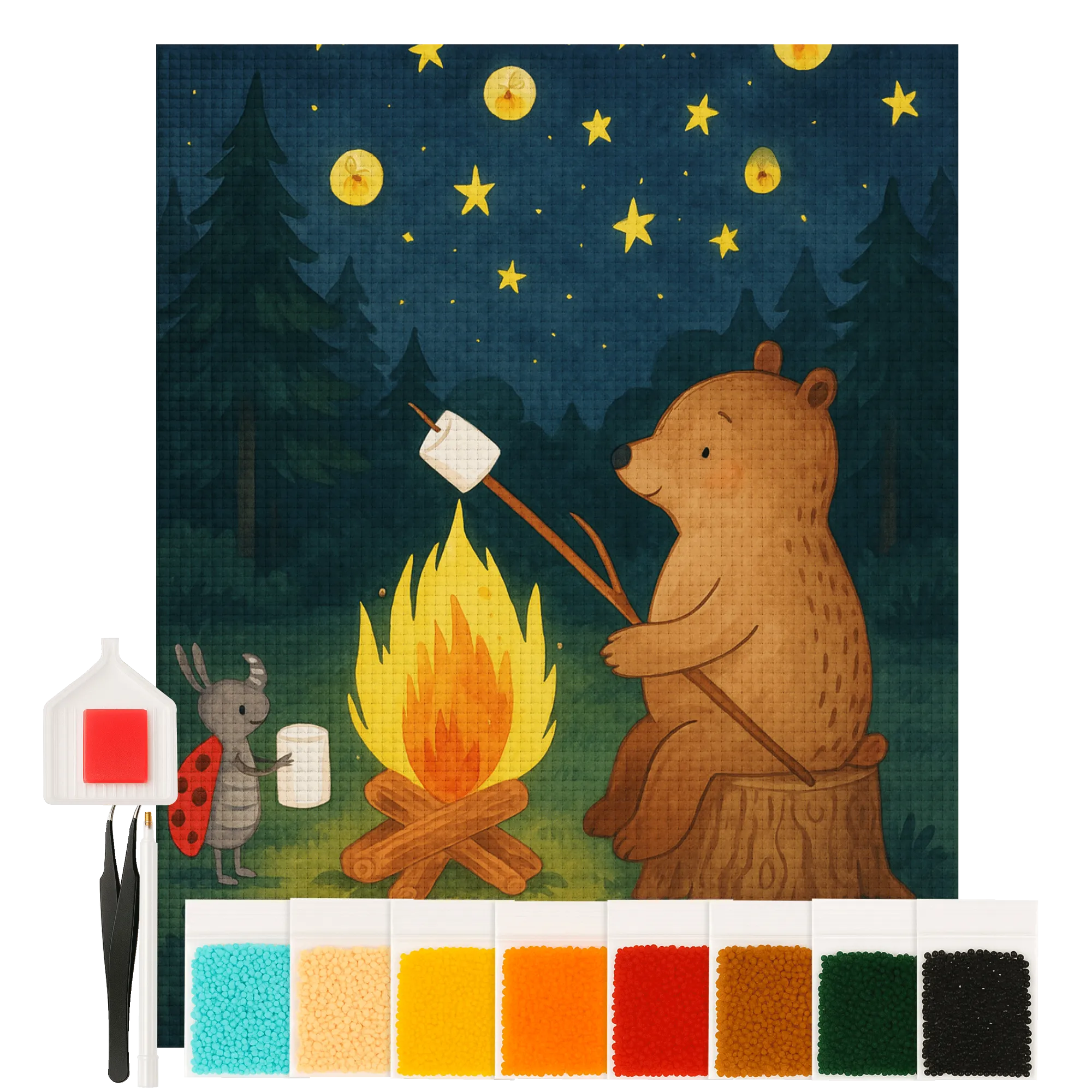 Diamond Painting Bear & Ladybird campfire Design - Ohne Rahmen