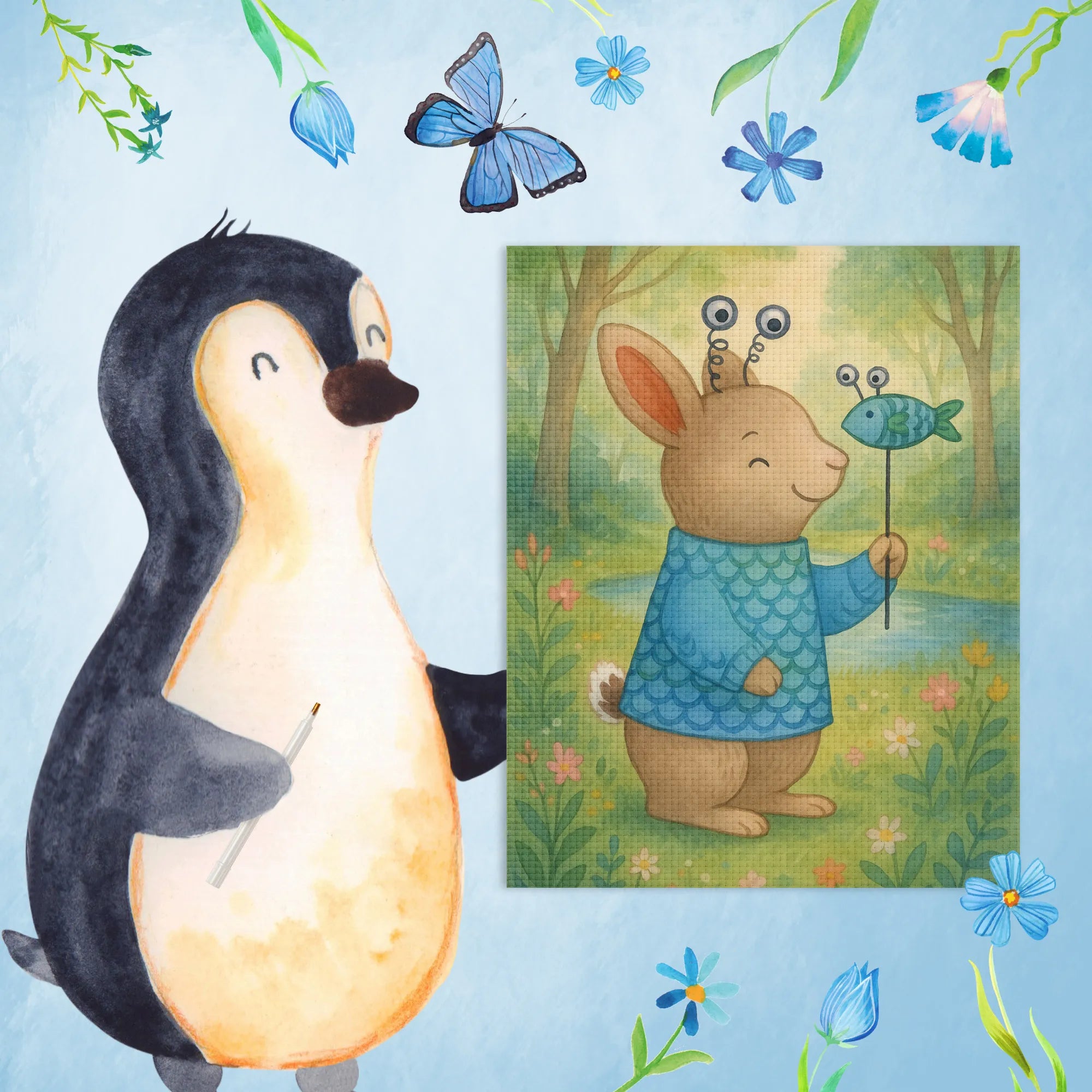 Hier zeigt unser süßes Kaninchen stolz seinen neuen Fisch-Freund, der mit seinen kleinen Armen und der coolen Brille einfach nur liebenswert wirkt! Dieses verspielte Motiv ist nicht nur eine Hommage an das Sternzeichen Fische, sondern auch an die Freude, die das Schenken mit sich bringt! Das Kaninchen strahlt in seinem blauen Outfit, das es mit Fischschuppen verziert hat, und es vermittelt uns die Hoffnung, dass wir alle mehr Farben und Träume in unser Leben einladen sollten. Perfekt geeignet als Geschenkidee zum Geburtstag, die sowohl für Freunde als auch für Familie geeignet ist. Bringen Spaß und Leichtigkeit in dein Leben mit dieser liebevollen Illustration, die zum Lächeln anregt und Herzen erwärmt!