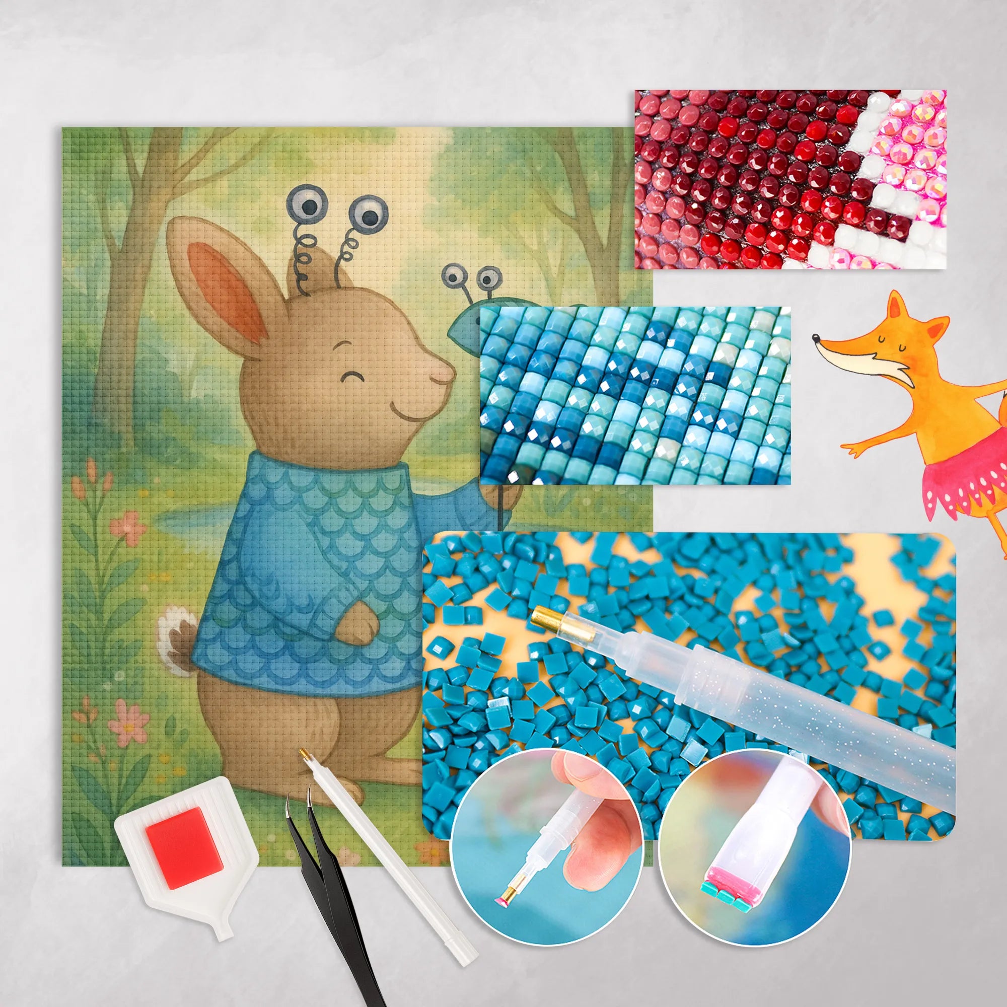 - Complete Set: Canvas (self-adhesive), colored resin diamonds (square), pen, wax, sorting tray & instructions