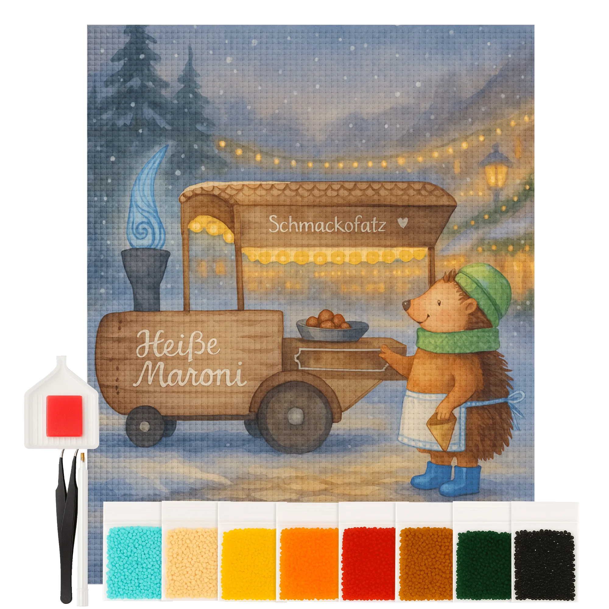 Diamond Painting hedgehog Chestnuts Design Winter, Christmas, Christmas time, snow