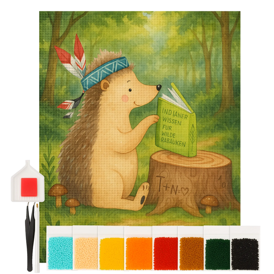 In der ruhigen Nacht sitzt unser Igel Indianer auf einem knorrigen Baumstumpf und genießt die Stille, während er in ein Buch über ferne Abenteuer eintaucht. Über seinem Kopf tragen farbenfrohe Federn seinen indianischen Geist. Um ihn herum knistert das Lagerfeuer, und die Gedanken an aufregende Expeditionen schweben durch die Luft. Dieser Igel inspiriert nicht nur Kinder, sondern auch Erwachsene dazu, ihre Abenteuerlust zu wecken und die Schönheiten der Natur zu schätzen. Während das Licht des Feuers graziös flackert, erzählt er von Freundschaft, Mut und der Freude, die im Entdecken neuer Dinge liegt. Lass dich von seiner positiven Energie anstecken und erinnere dich daran, dass jeder Tag voller Möglichkeiten ist! Ob beim Camping oder beim Entspannen im eigenen Garten – der Igel Indianer bringt eine liebevolle Abenteueratmosphäre in dein Leben.