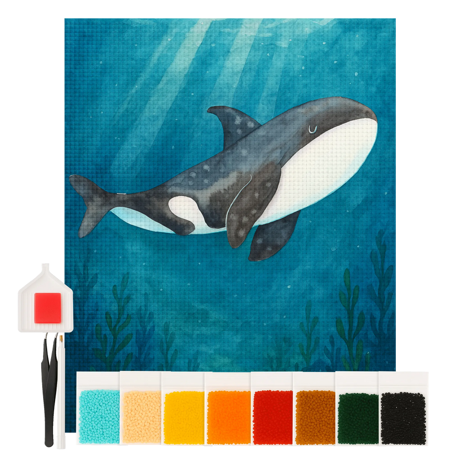 Diamond Painting Orca Design Seafood, aquatic animals, ocean, sea, fish, shells, corals, reef, whale, narwhal, sea urchin, lobster, platypus, turtle, manatee, crocodile, orca, shrimp, gifts for seafood lovers, water world, underwater animals, underwater world, vacation, deep sea, seafood fans, gift ideas, seafood decoration, seafood posters, killer whale, orcas, opportunities, motivation, work, office, self-love, startup, new start