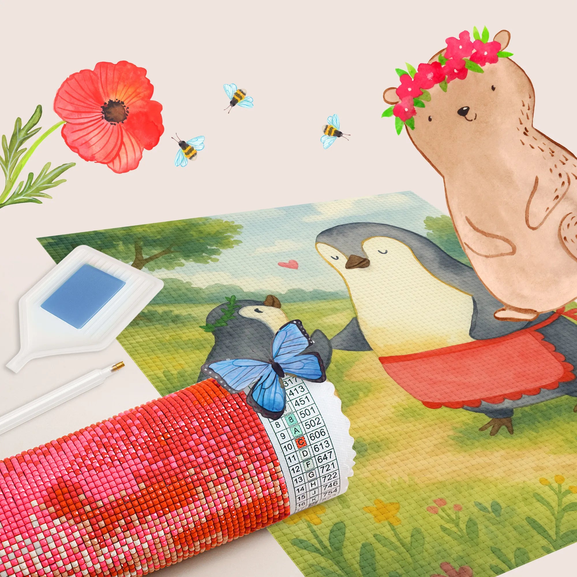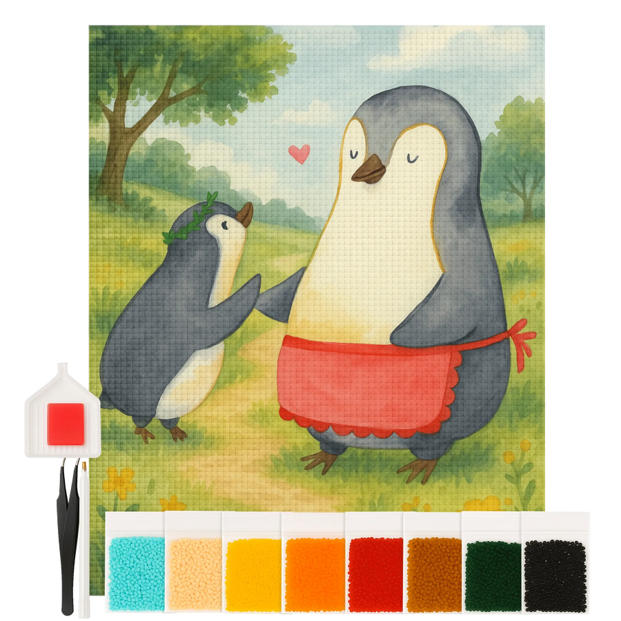 Diamond Painting Penguin with child Design - Ohne Rahmen