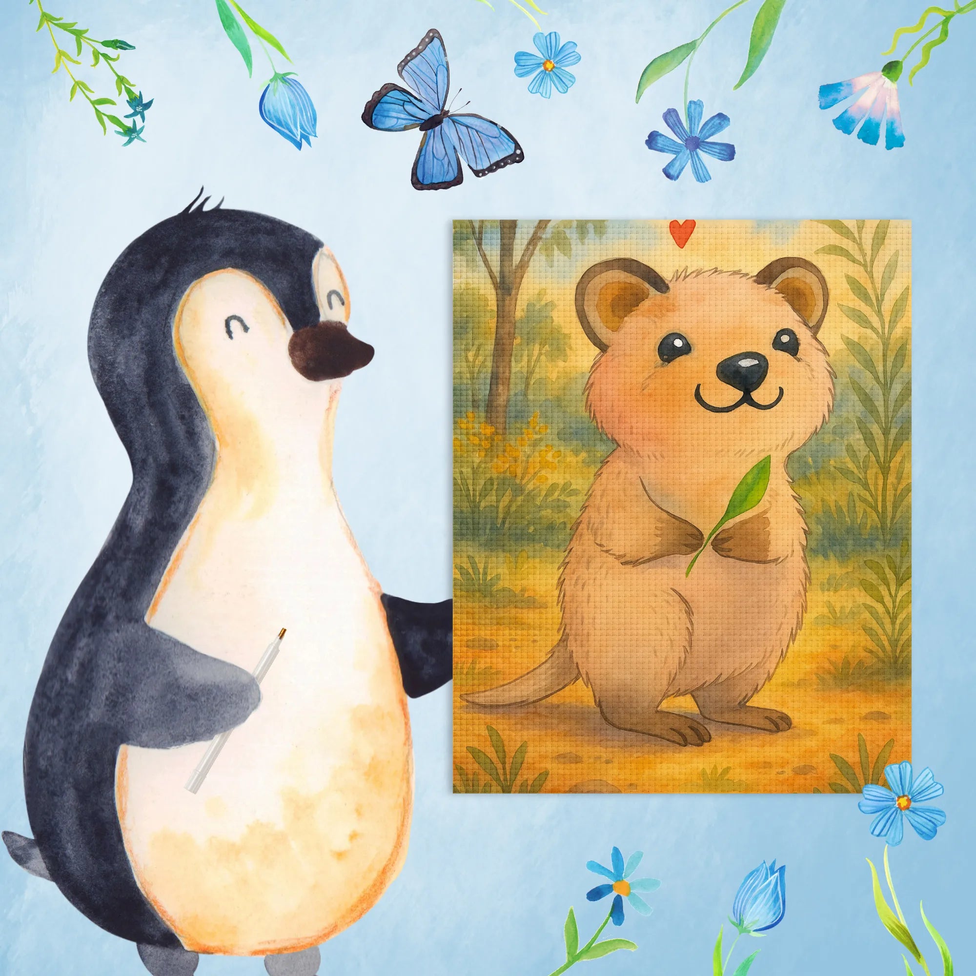 Schau dir unser fröhliches Quokka an, das voller Lebensfreude steht! Mit einem strahlenden Lächeln und einem frischen grünen Blatt in den Pfoten suggeriert es, dass der Tag voller Möglichkeiten ist. Das rosa Herz über seinem Kopf verstärkt diese positive Ausstrahlung und lässt jeden Raum heller erscheinen. Es ist eine sanfte Erinnerung daran, wie wichtig es ist, den Antrieb für alltägliche Erledigungen zu finden und gleichzeitig die Unbeschwertheit des Lebens zu genießen. Egal, ob es um das Aufschieben von Aufgaben oder um das Entdecken neuer Wege geht – dieses süße Tierchen ist die perfekte Inspiration. Lass uns wie das Quokka sein, das immer mit einem Lächeln in den Tag geht und bereit ist, jeden Moment zu leben. Seine liebevolle Ausstrahlung wirkt wie ein kleiner Motivationskick und ermutigt uns, aktiv zu bleiben, die Dinge zu erledigen und das Leben in vollen Zügen auszukosten.