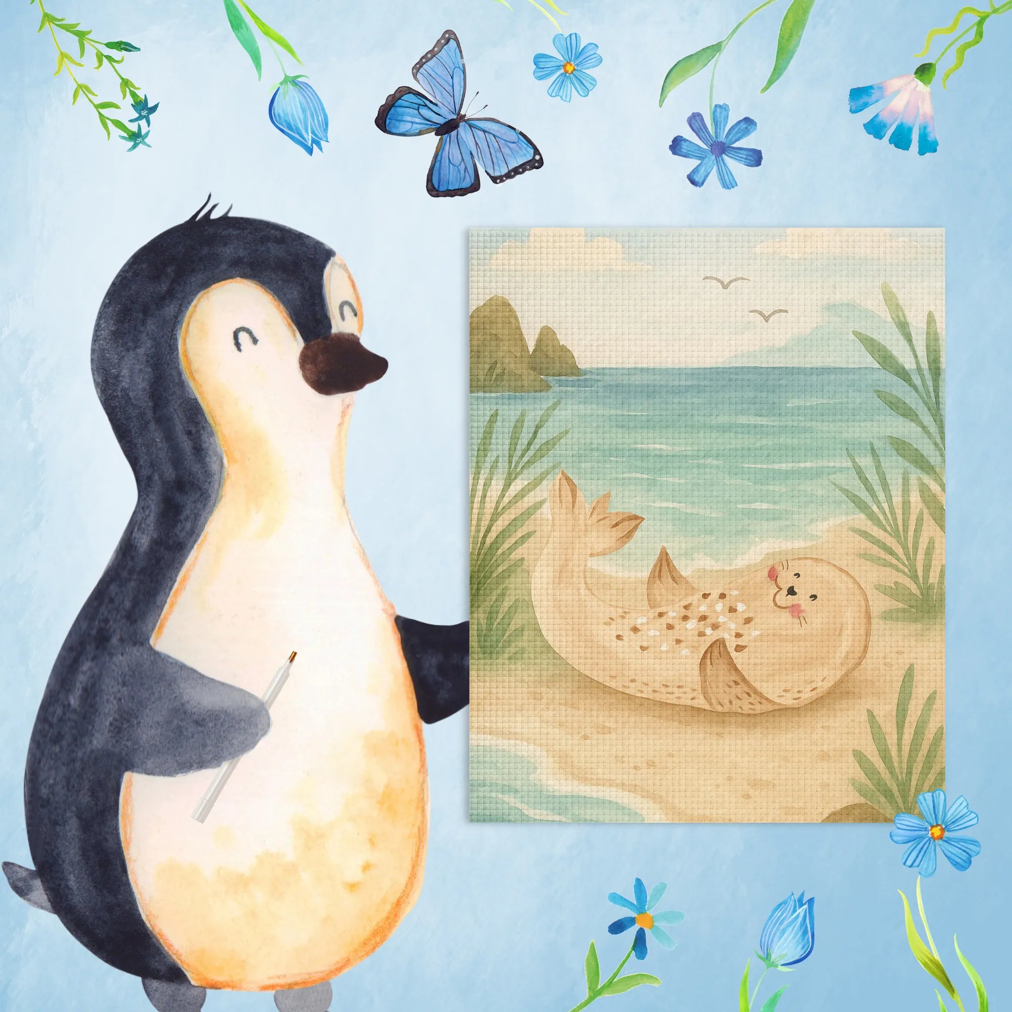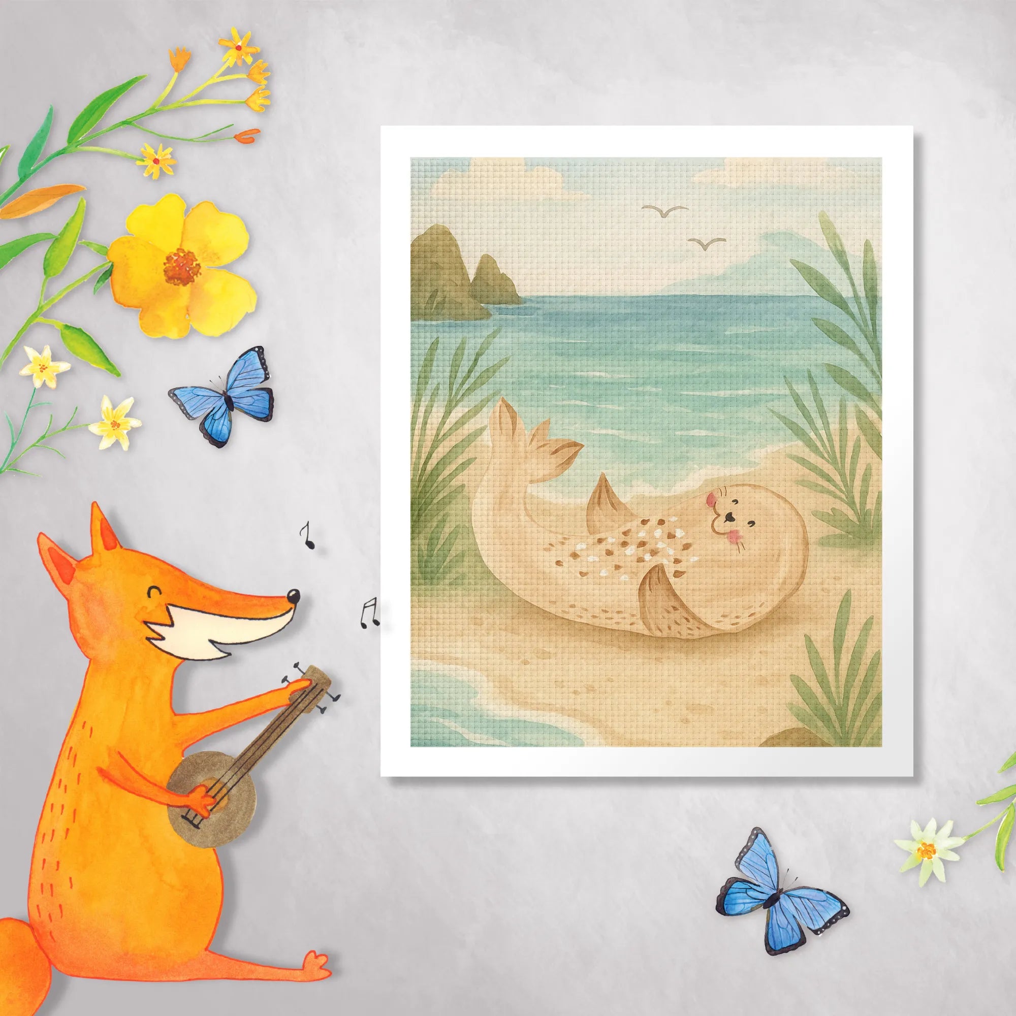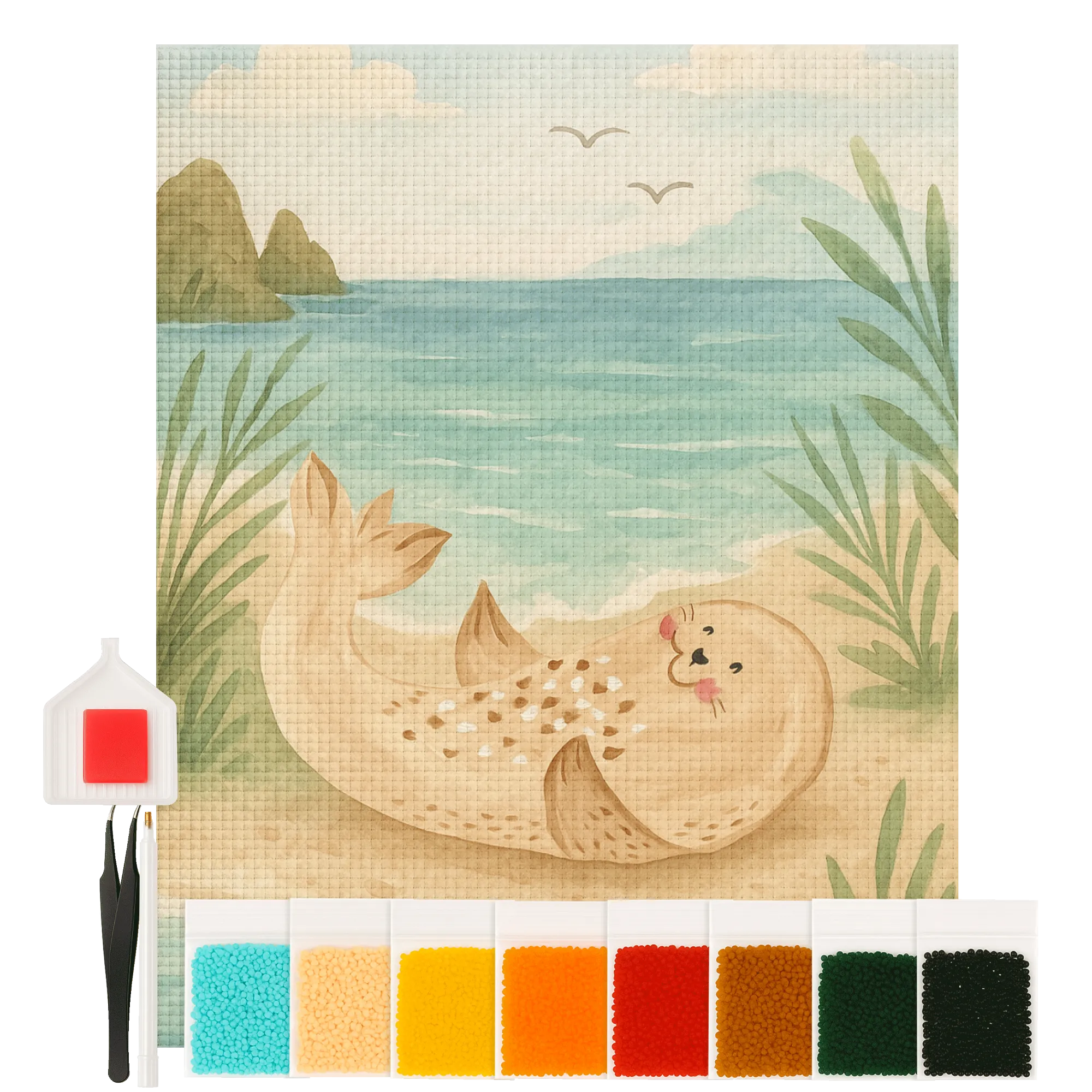 Imagine a lovable seal, perfectly perched on the beach, with a huge heart full of laughter and joy. This sea animal knows what it means to take life one sunbeam at a time, basking comfortably on soft sands. It reminds us all to let go of our worries and dive into the happiness that surrounds us - whether by the Baltic Sea or the North Sea. This sunny creature invites you to celebrate life, embracing the magic found in little moments on the shore. Just like it rolls in the waves, let this seal inspire you to roll into laughter and create cherished memories filled with fun and sparkles.