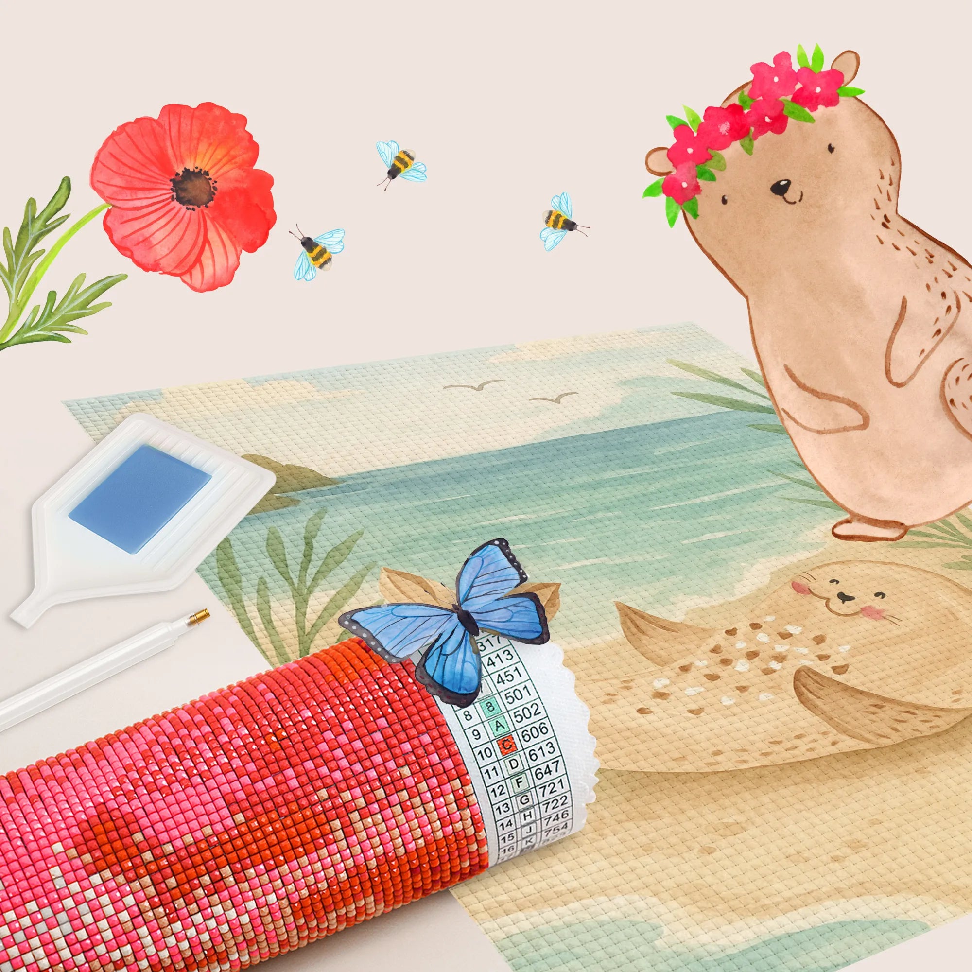 - Complete Set: Canvas (self-adhesive), colored resin diamonds (square), pen, wax, sorting tray & instructions