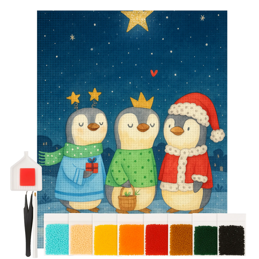 Winter Time Three Kings Penguins - Special Christmas Motif for Celebrations