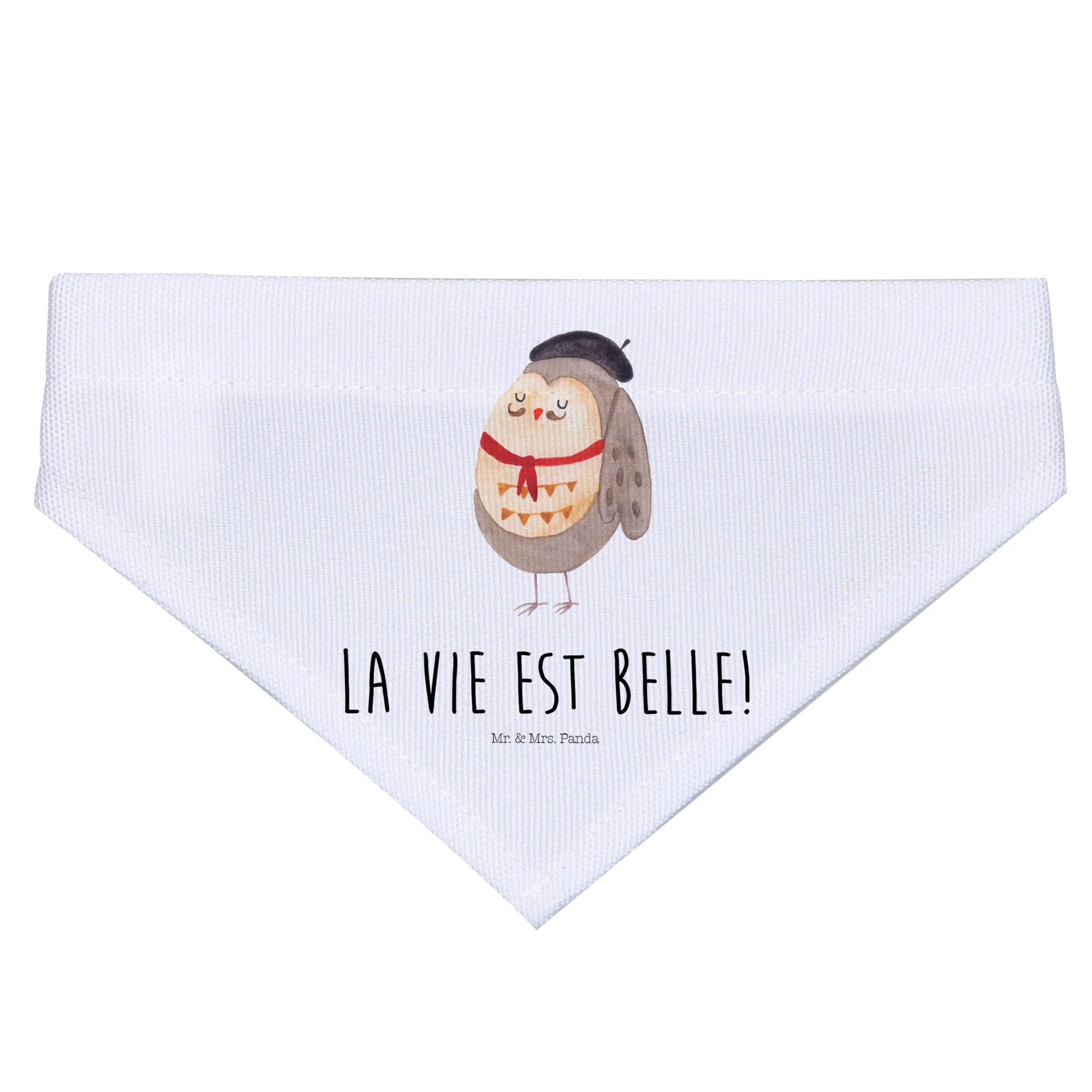 Designed specifically for small dogs, this premium polyester neckerchief is soft, comfortable, and perfect for adding a dash of personality to your beloved pet’s wardrobe. The scarf features the vibrant motif of a French owl, resonating with the phrase "La vie est belle!" (Life is beautiful!), reflecting the joy and happiness that our pets bring into our lives.