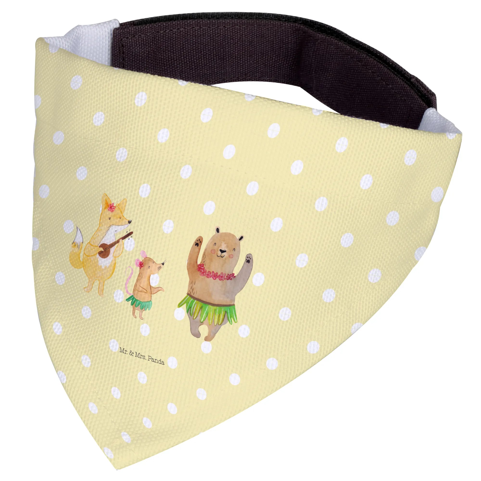 If you’re looking for a delightful gift for a dog lover or a charming accessory for your furry friend, look no further than the Dog Neckerchief featuring the "Aloha Forest Creatures" design from the beloved Small World collection by Mr. & Mrs. Panda!