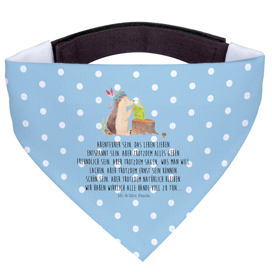 Dog neckerchief Hedgehog feather headdress - Dog neck scarf M - with saying - Blue Pastel