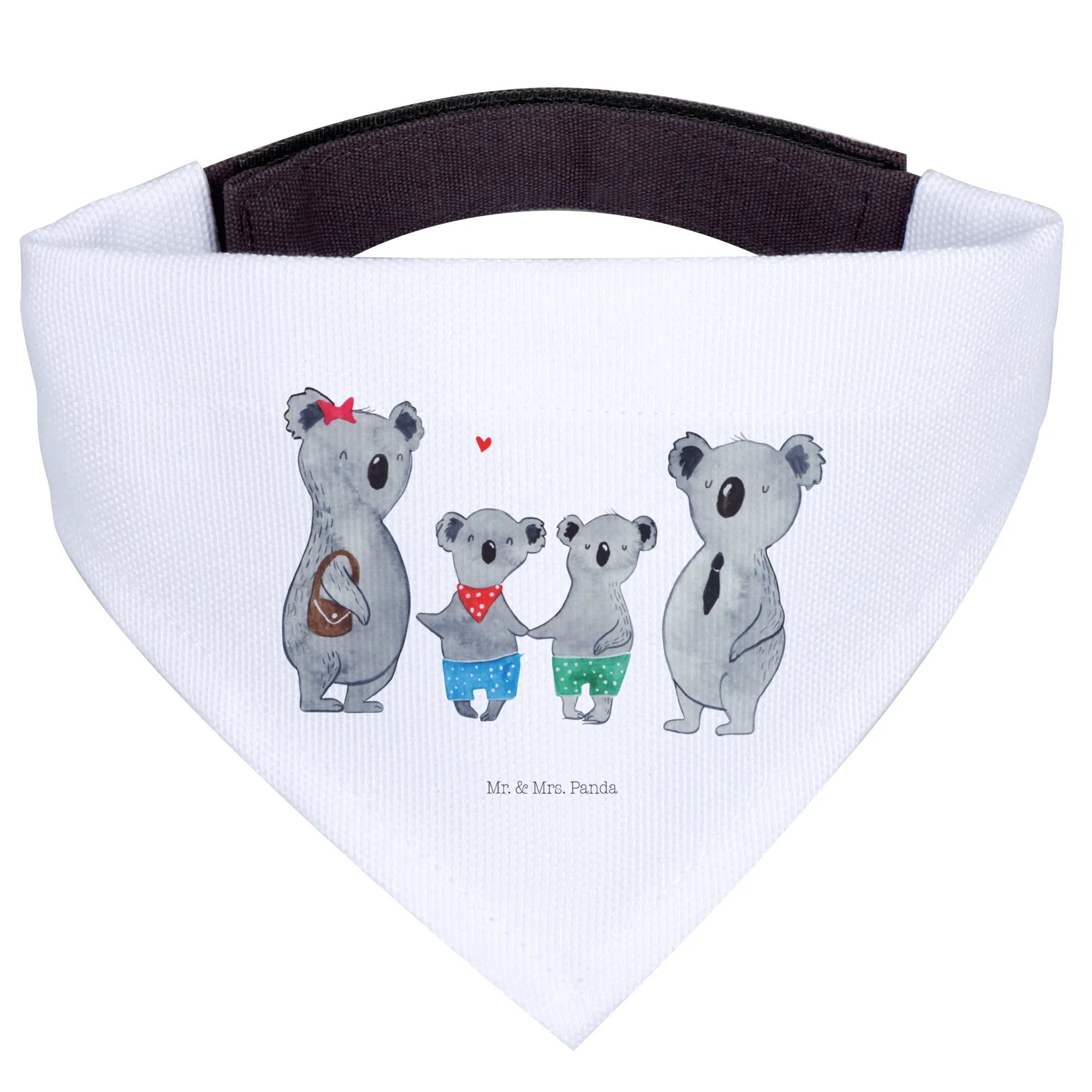 Dog neckerchief Koala family with two kids - Dog neck scarf M - with saying - White