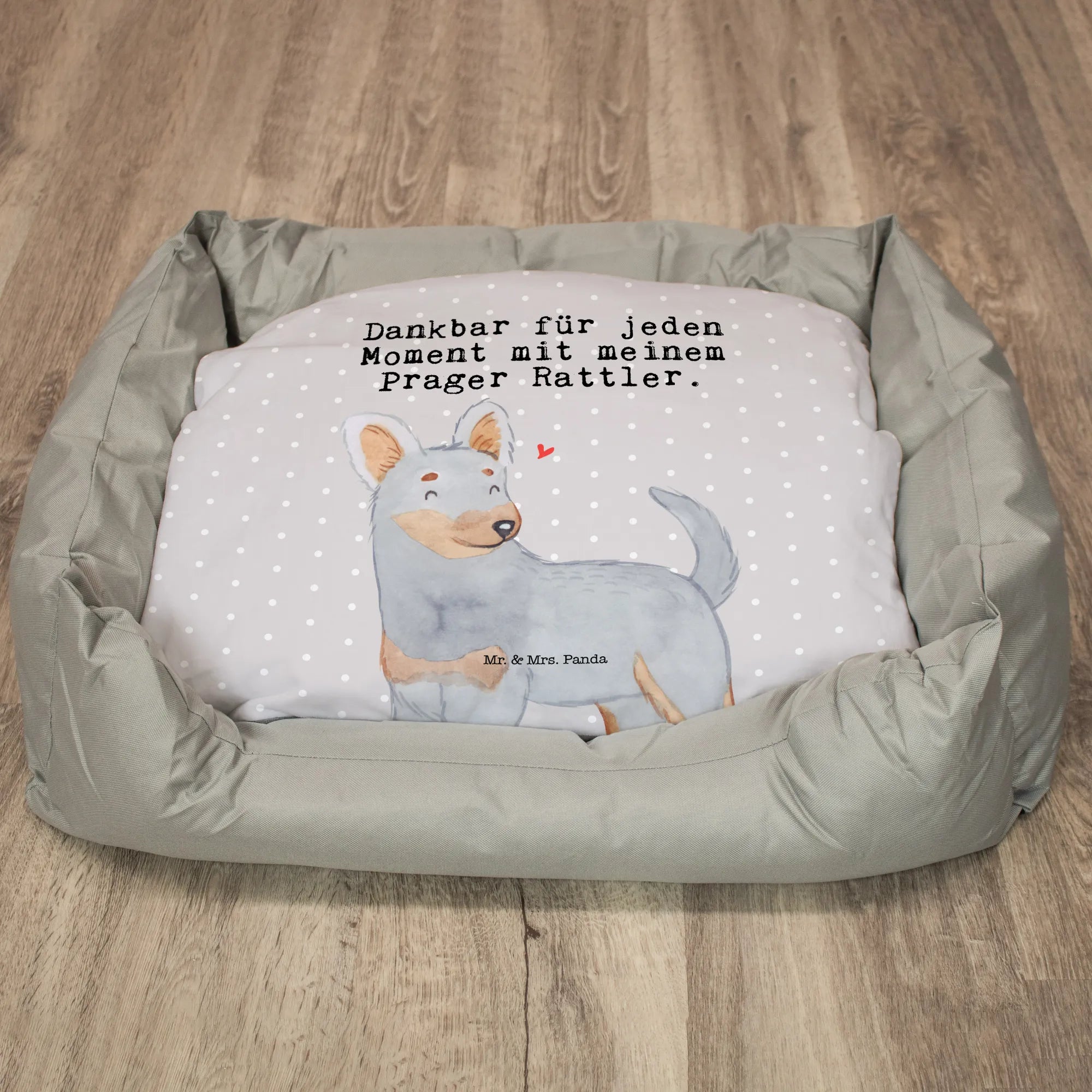 Welcome to the lively world of our Prager Rattler! This adorable pup, with its stunning gray coat and warm beige accents, is not just a pet—it’s a source of endless joy. Its expressive eyes sparkle with affection, inviting you into a hug of love and friendship. Above this charming creature floats a small red heart, a lovely symbol of the bond that connects us with our four-legged companions. The saying, 'Dankbar für jeden Moment mit meinem Prager Rattler,' resonates deeply, reminding us to cherish all the little moments we share. It captures a spirit of gratitude for every wag, bark, and snuggle that fills our lives with laughter and love. This delightful motif serves as a wonderful reminder to celebrate those cherished moments and embrace the happiness our furry friends bring every single day.