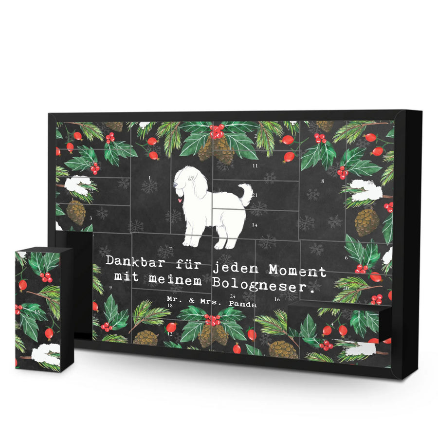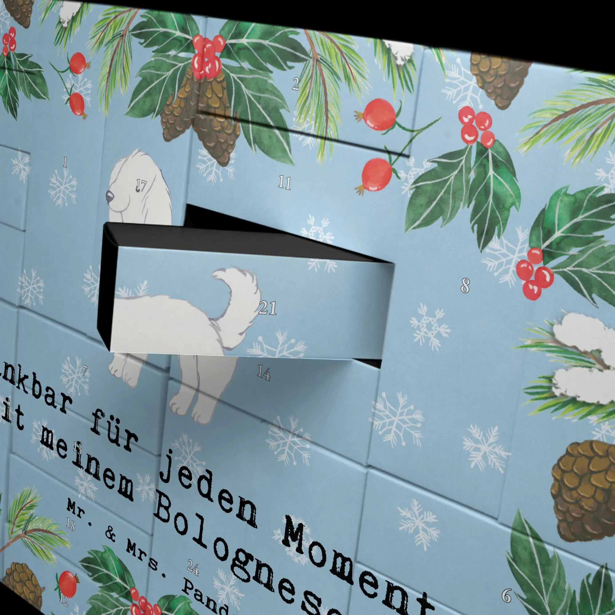 Unser Befüllbarer Adventskalender „Bologneser Moment“ von Mr. & Mrs. Panda ist ein liebevoll gestaltetes Highlight für alle Hundeliebhaber. Auf der Vorderseite findest du eine zarte Aquarellzeichnung von Mrs. Panda: ein flauschiger Bologneser, dessen weiches Fell und liebevoller Blick sofort das Herz erwärmen. Der Slogan „Dankbar für jeden Moment mit meinem Bologneser.“ macht den Kalender zu einer besonders persönlichen Geschenkidee.