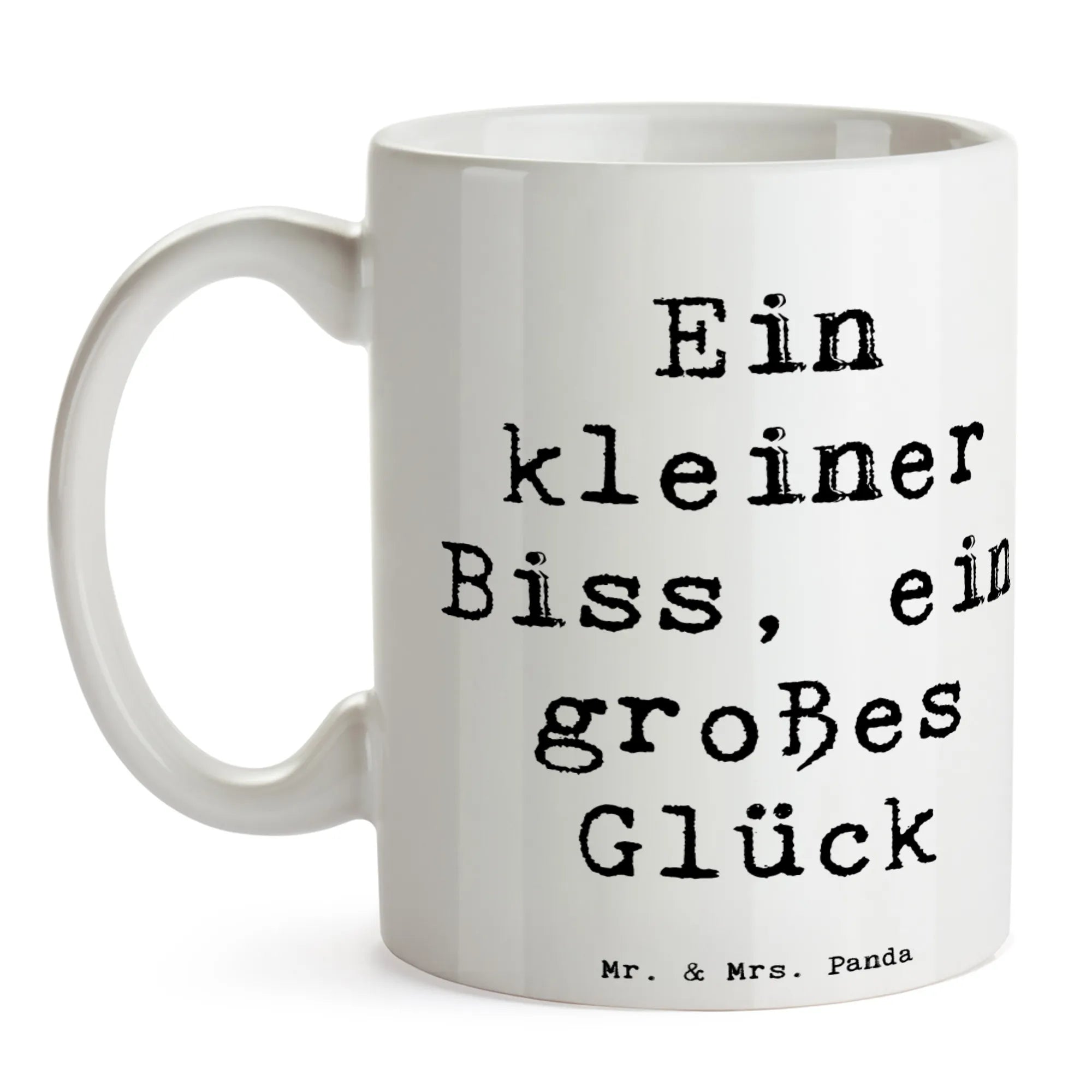 Mug Saying Ein kleiner Biss, ein großes Glück - White