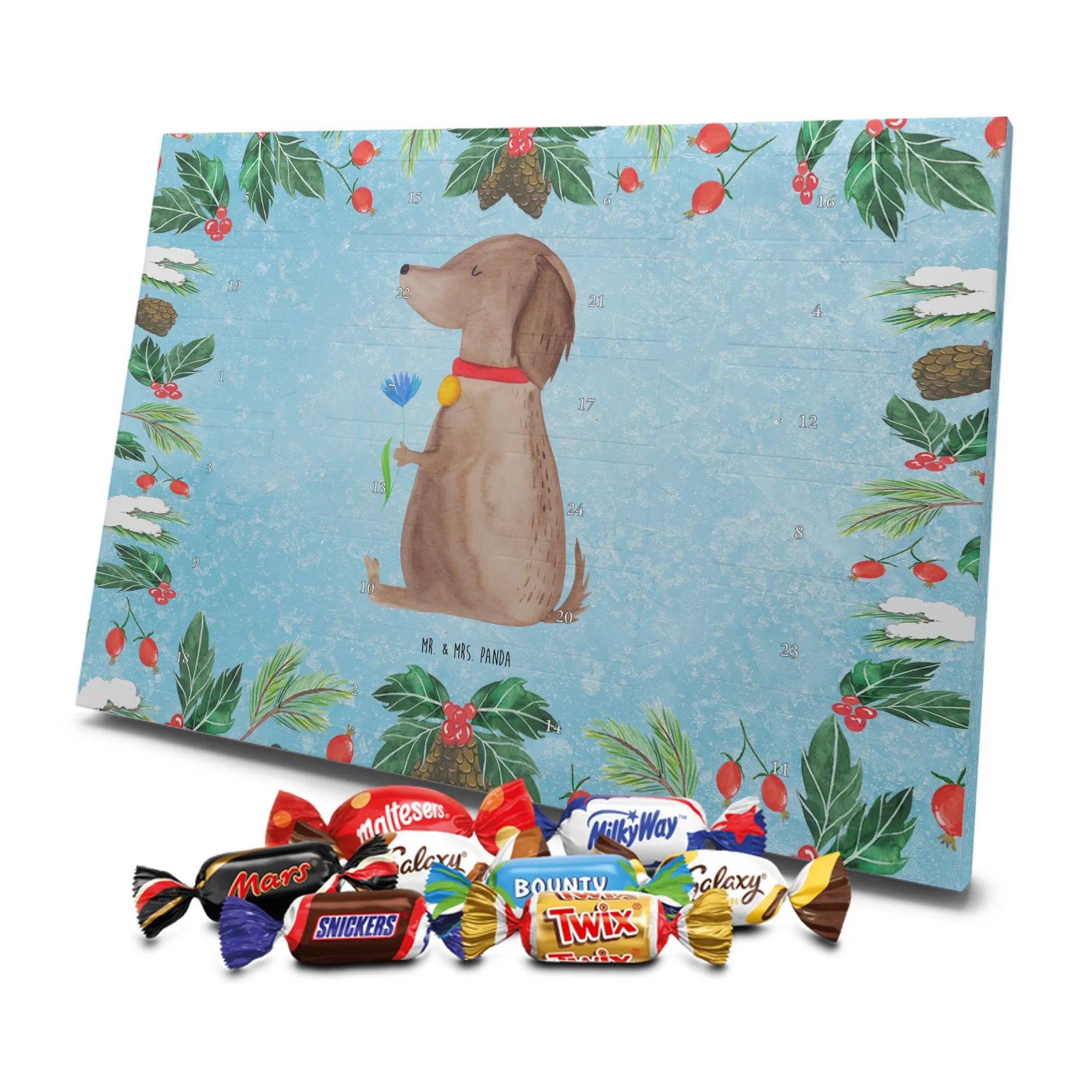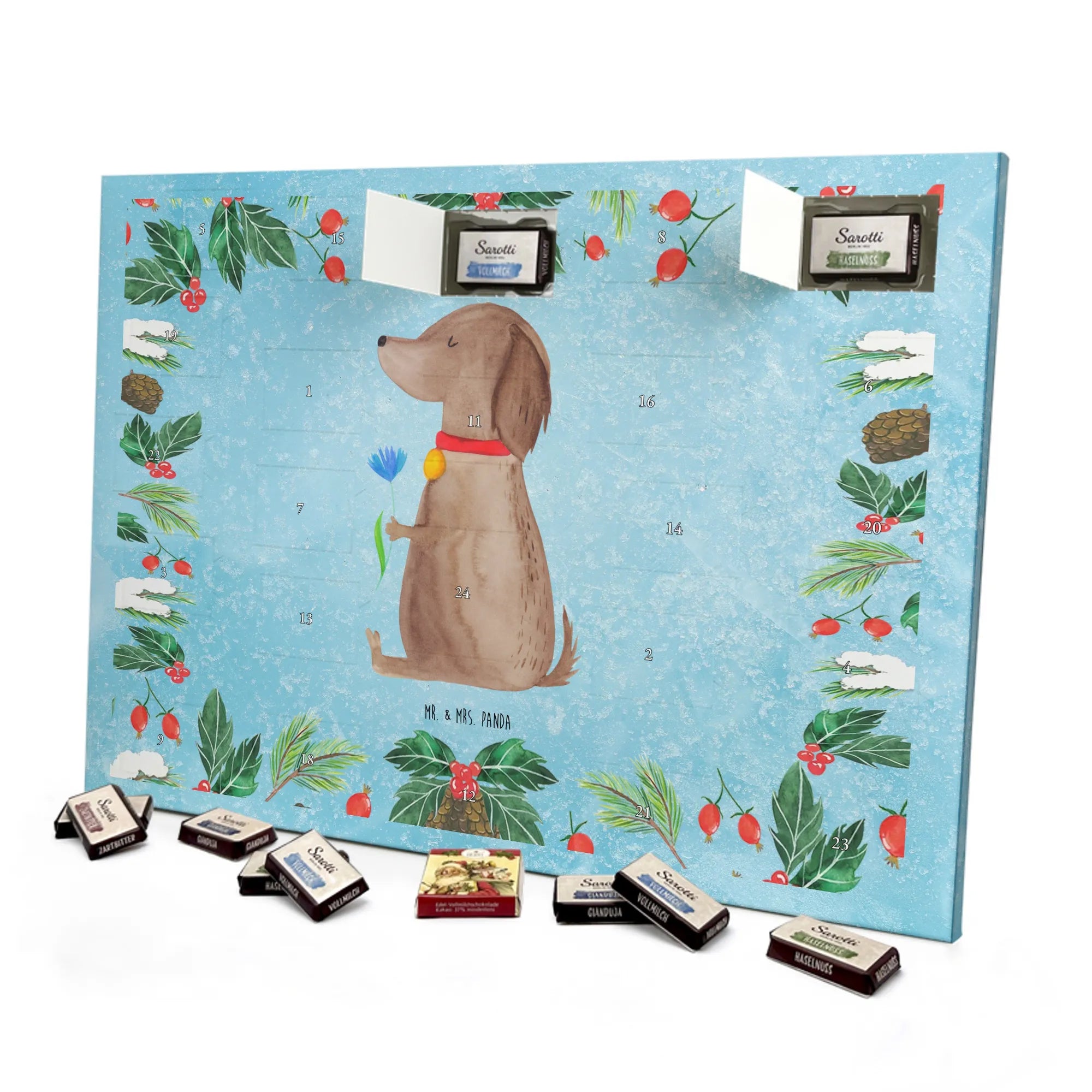 Chocolate advent calendar Dog flower - Classic - with saying - Ice Blue