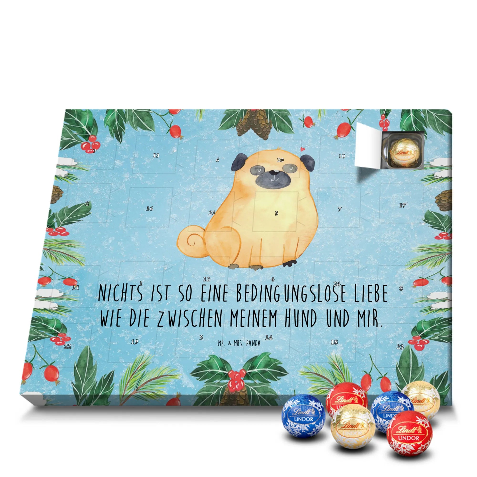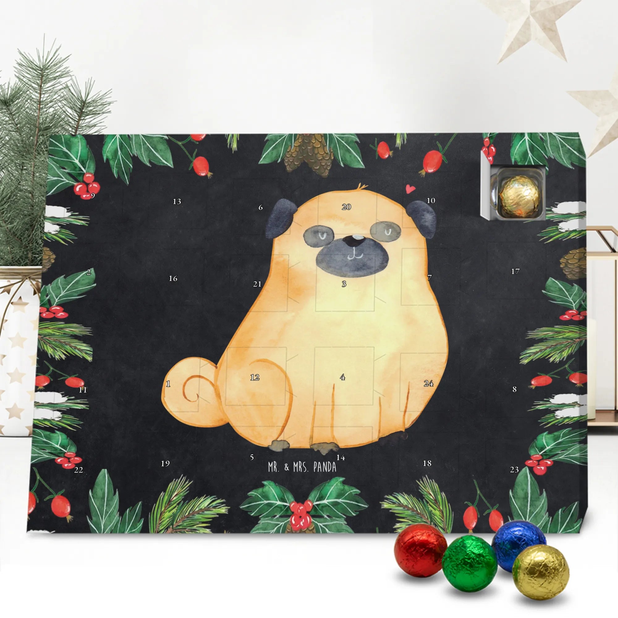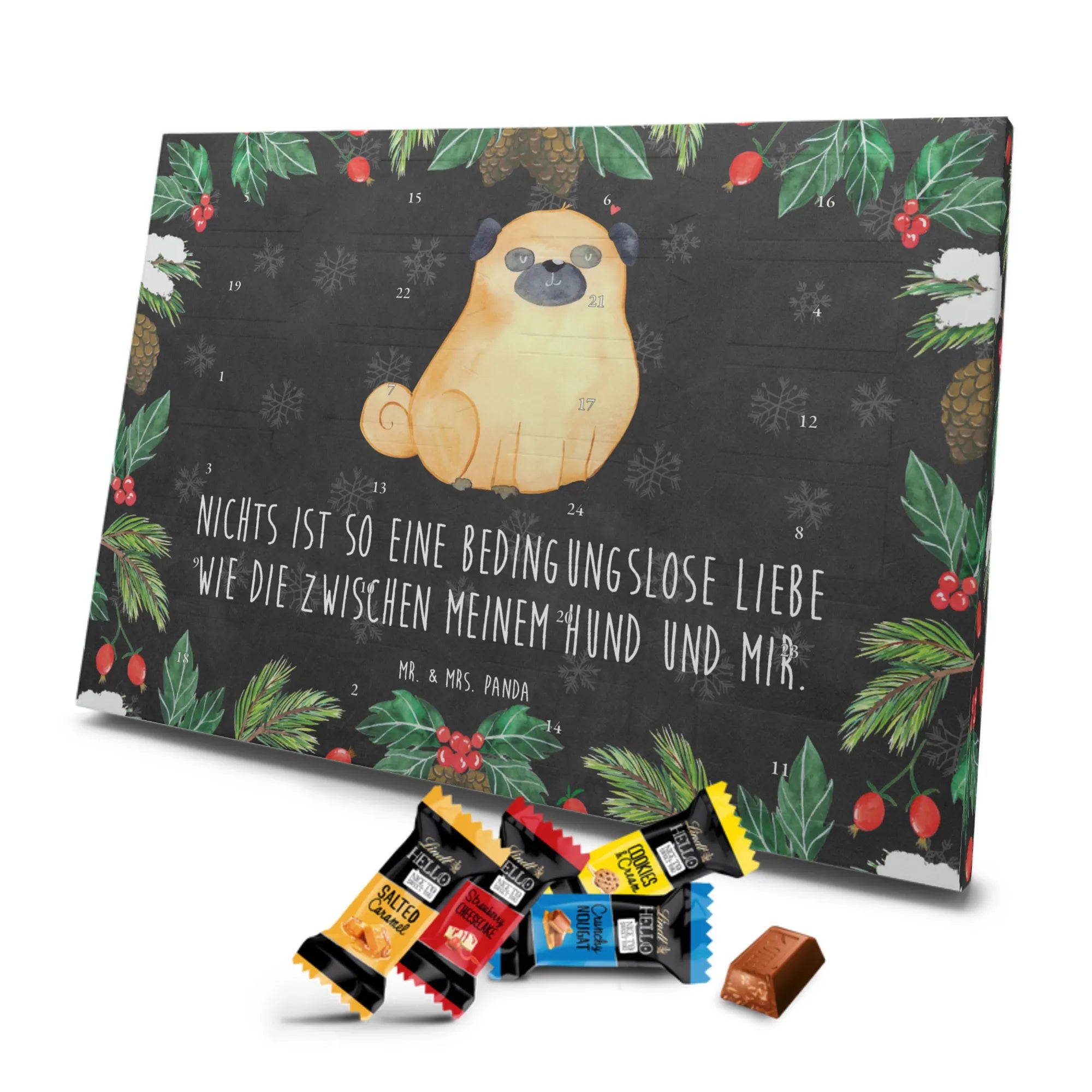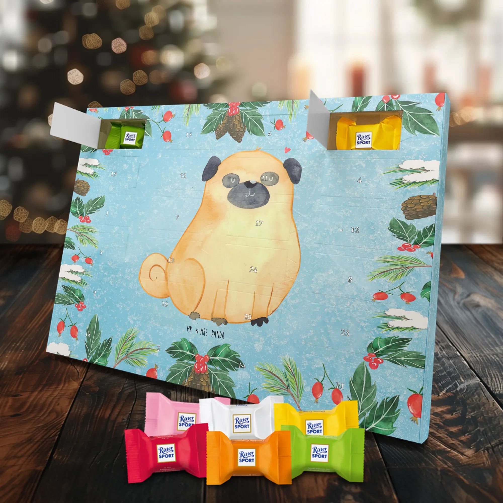 Chocolate advent calendar Pug - Classic - with saying - Ice Blue