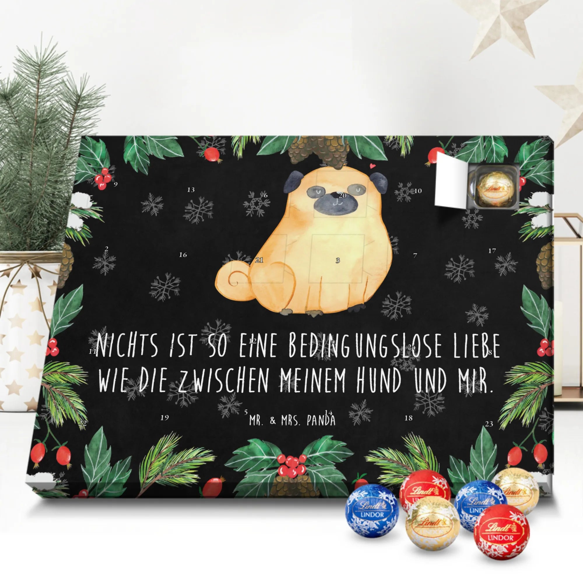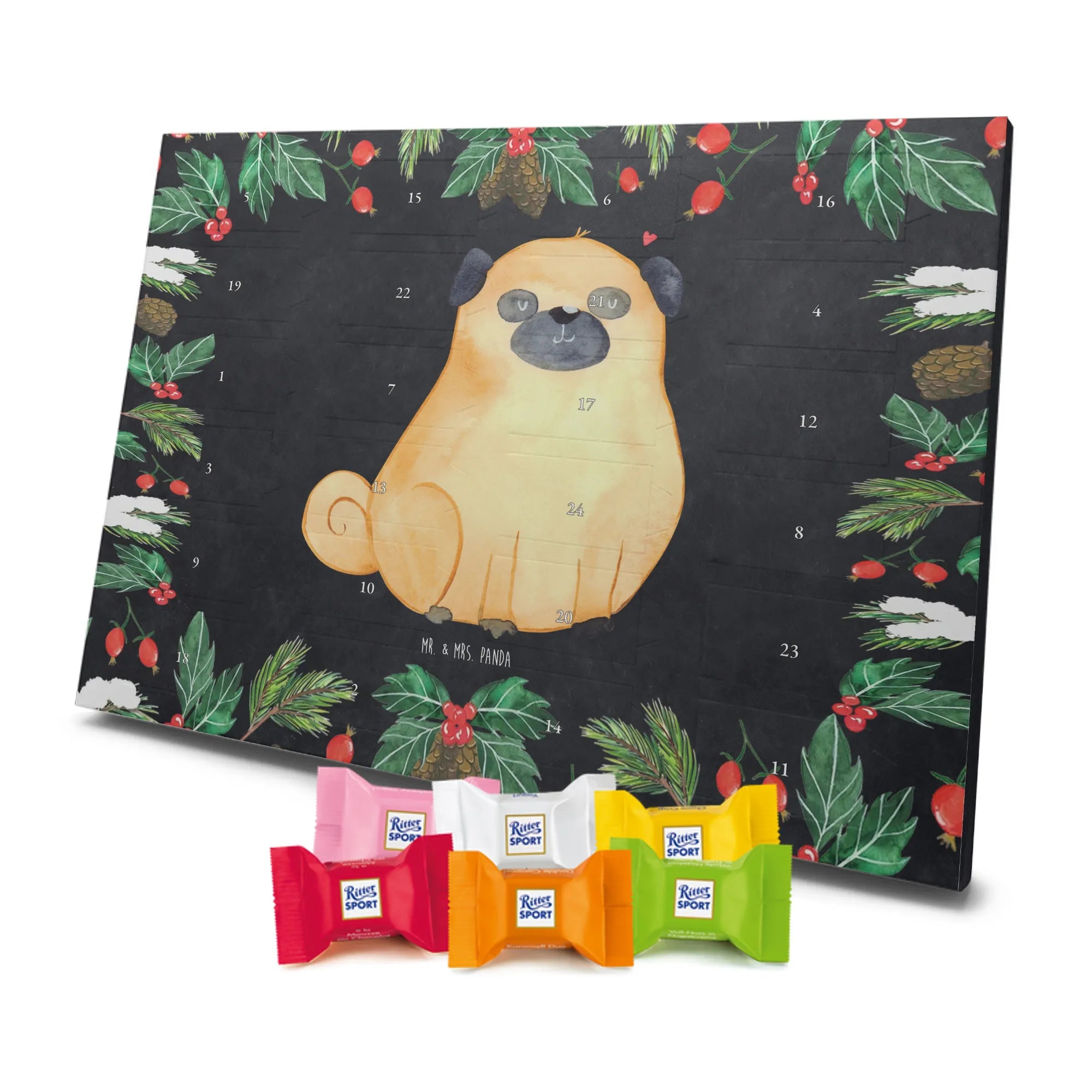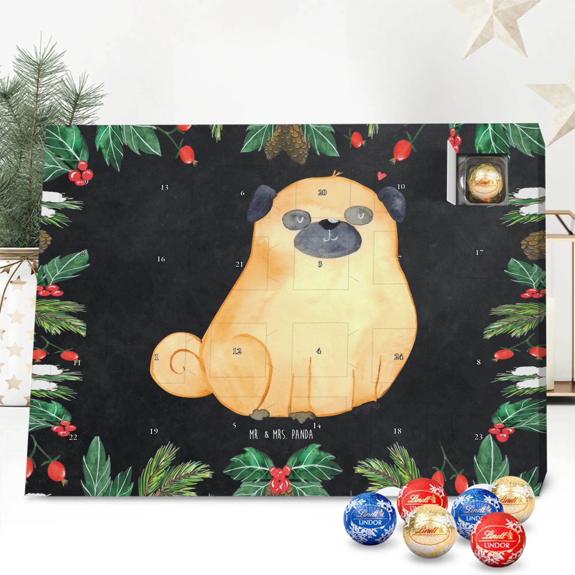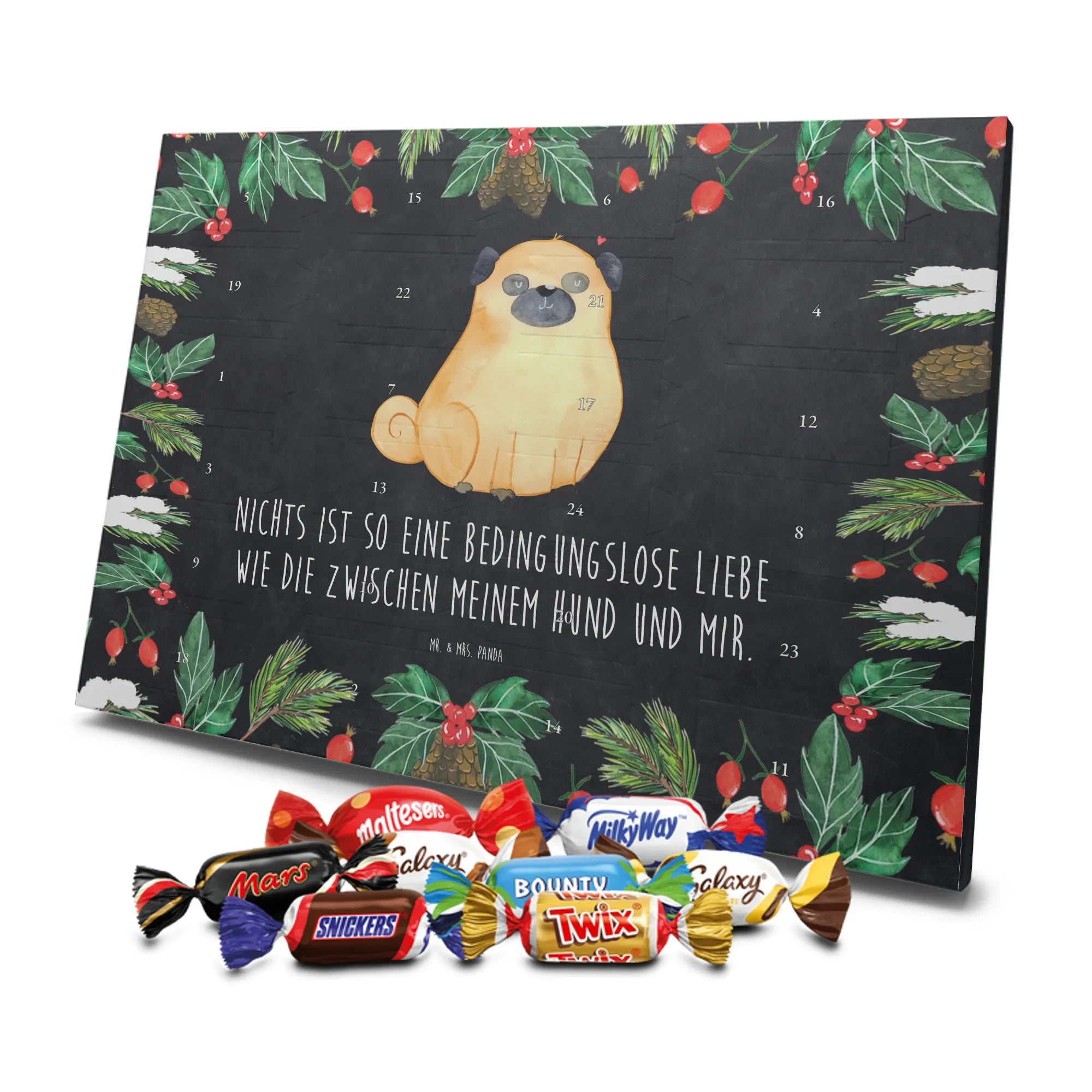 Chocolate advent calendar Pug - Classic - with saying - Ice Blue