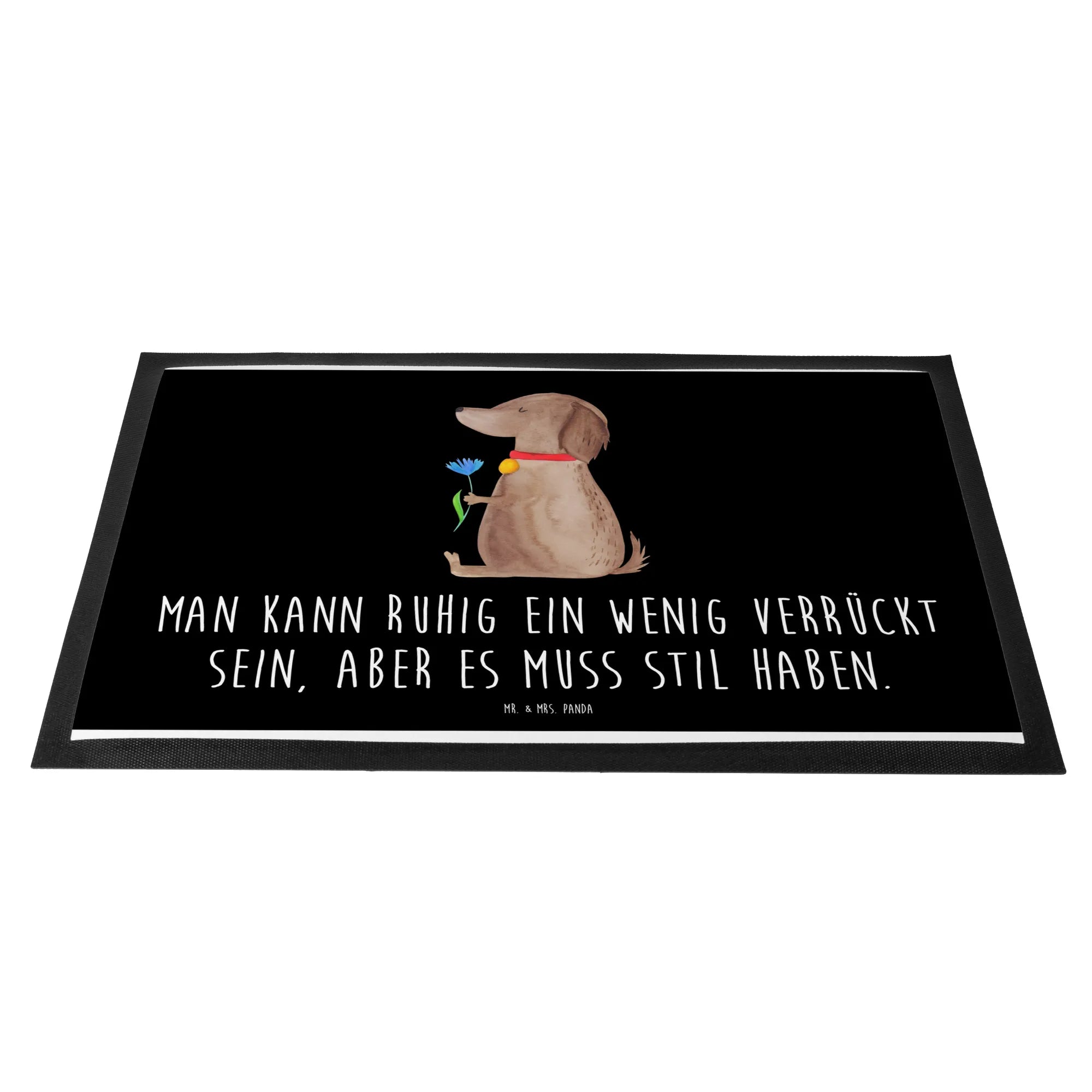 Doormat Dog flower - 60 x 90 cm - with a saying - Black