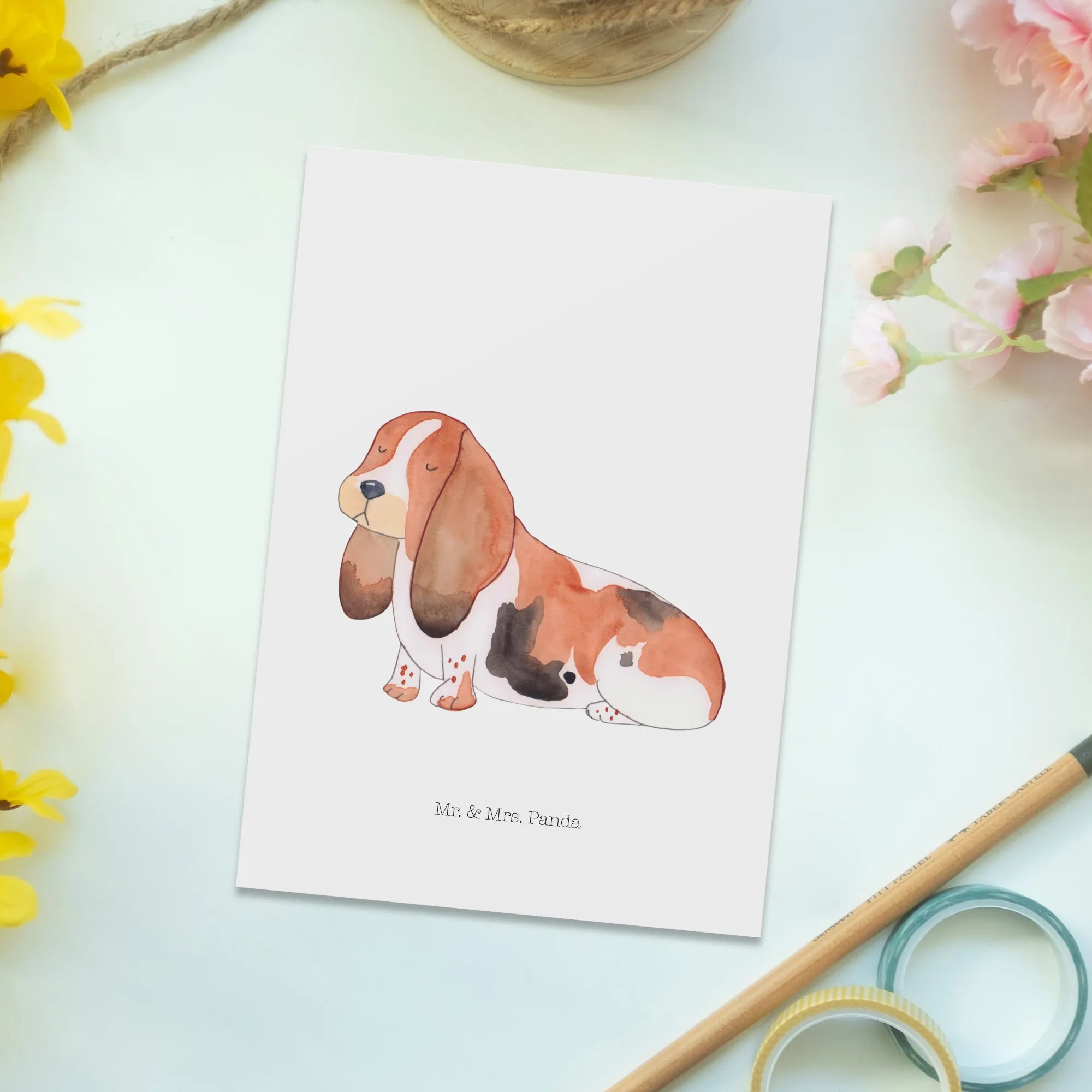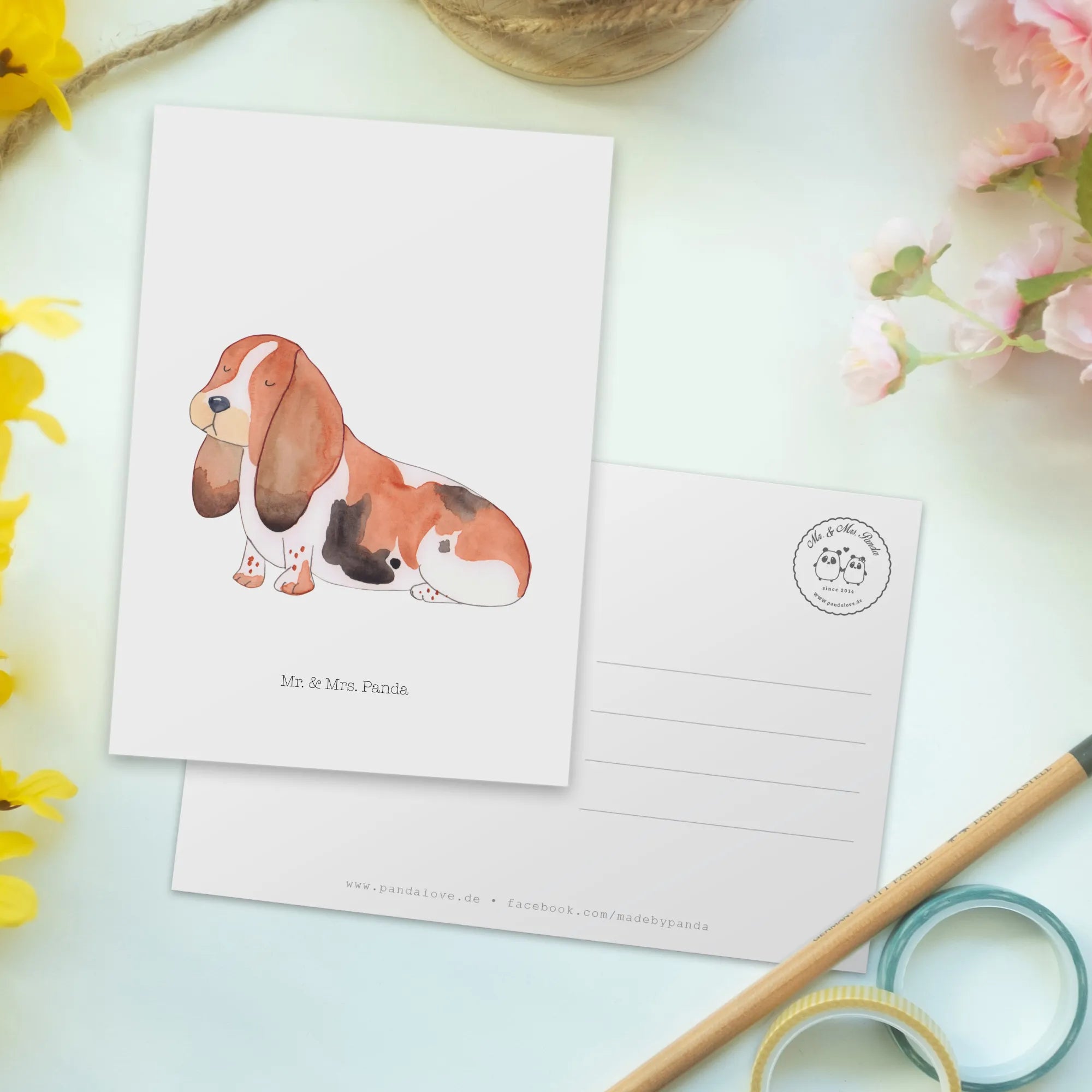 If you're searching for the perfect gift that embodies both love and humor for a dog lover, look no further than our delightful Postcard featuring an adorable Dog Basset Hound from the exclusive Mr. & Mrs. Panda Dog Collection!