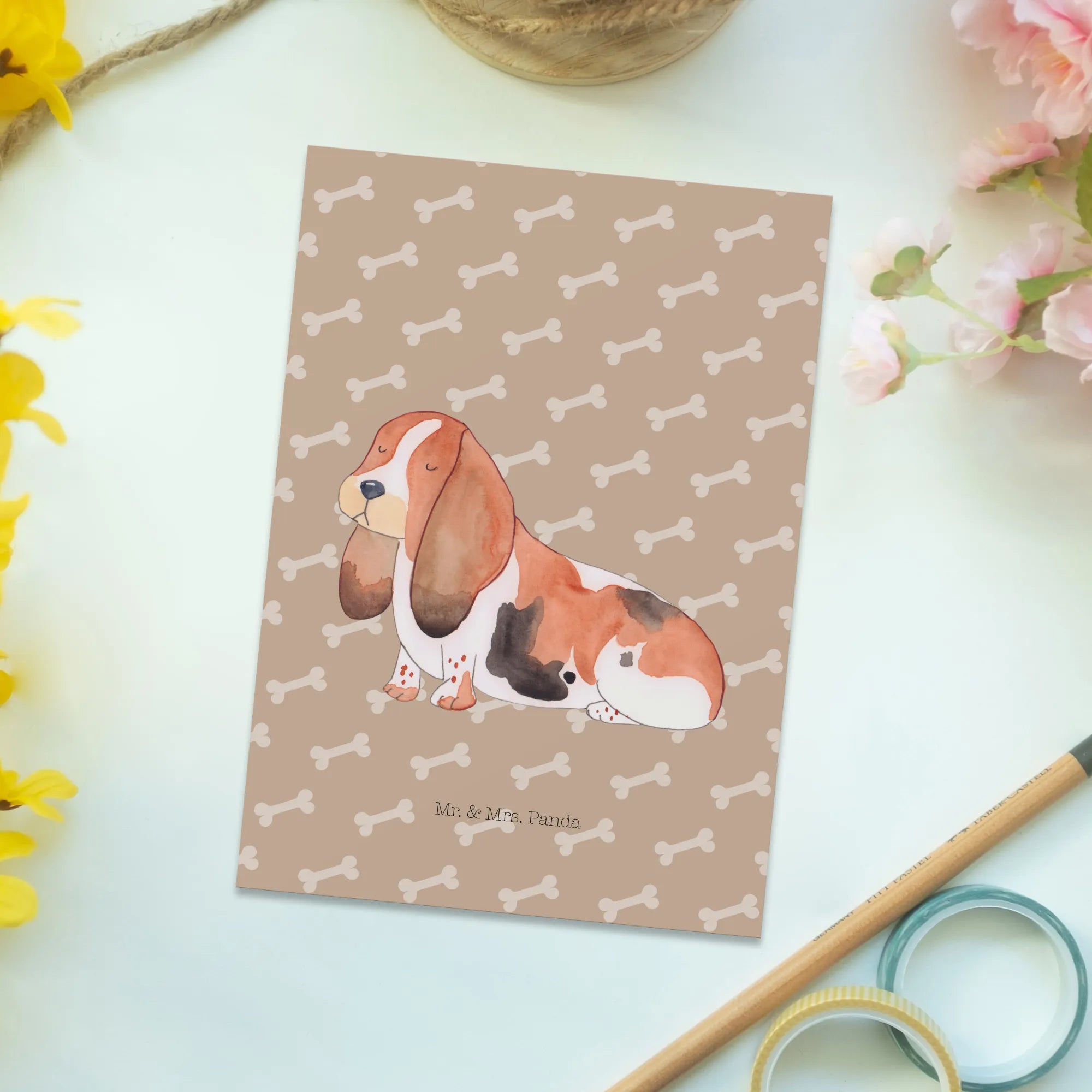 Postcard Dog Basset Hound - with saying - Happiness of dogs