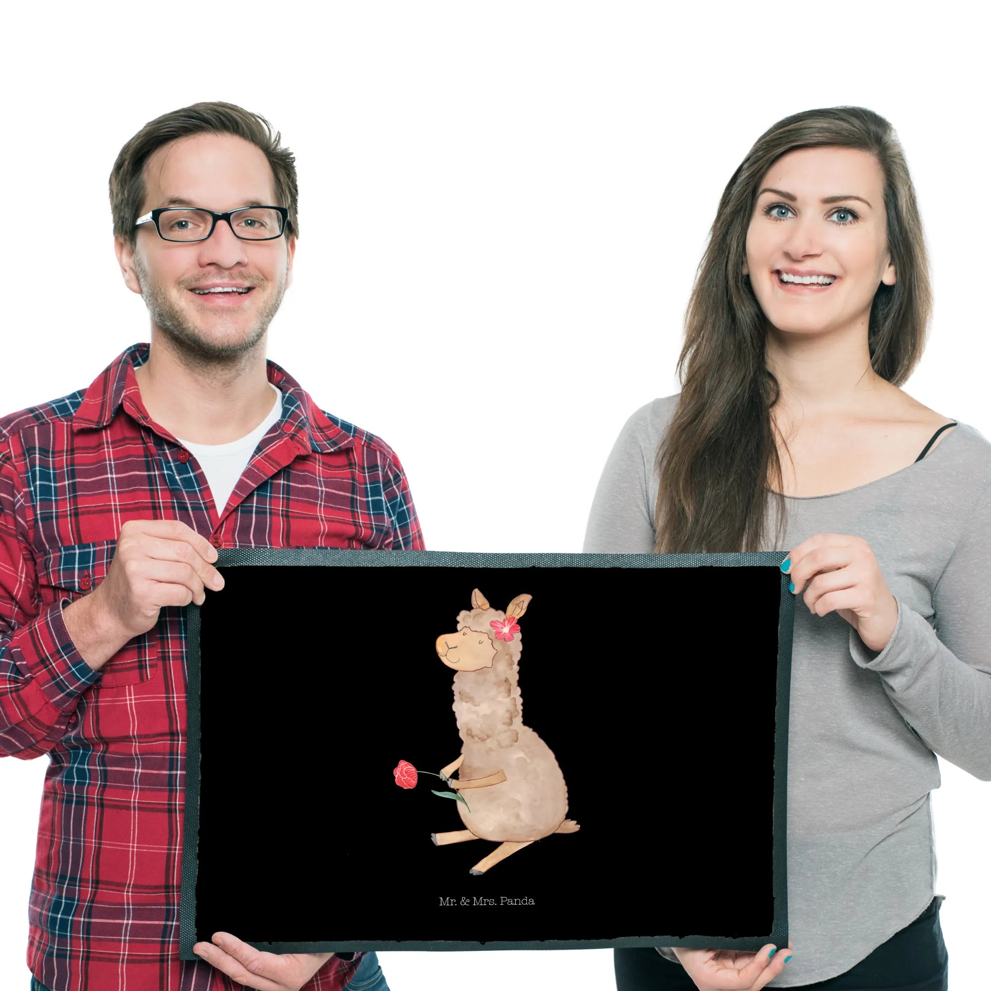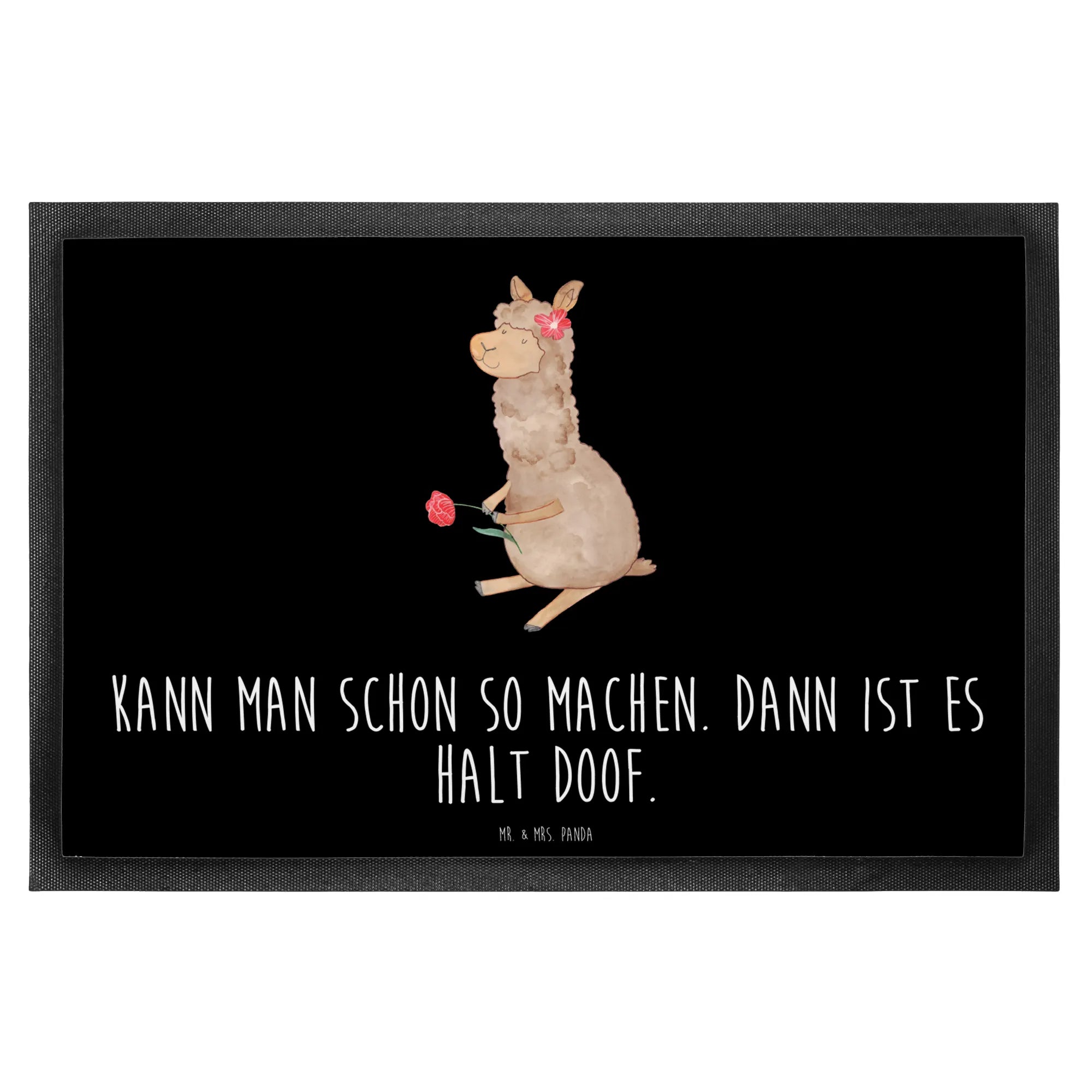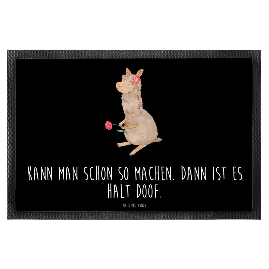 Doormat alpaca flower - 50 x 75 cm - with saying - Black