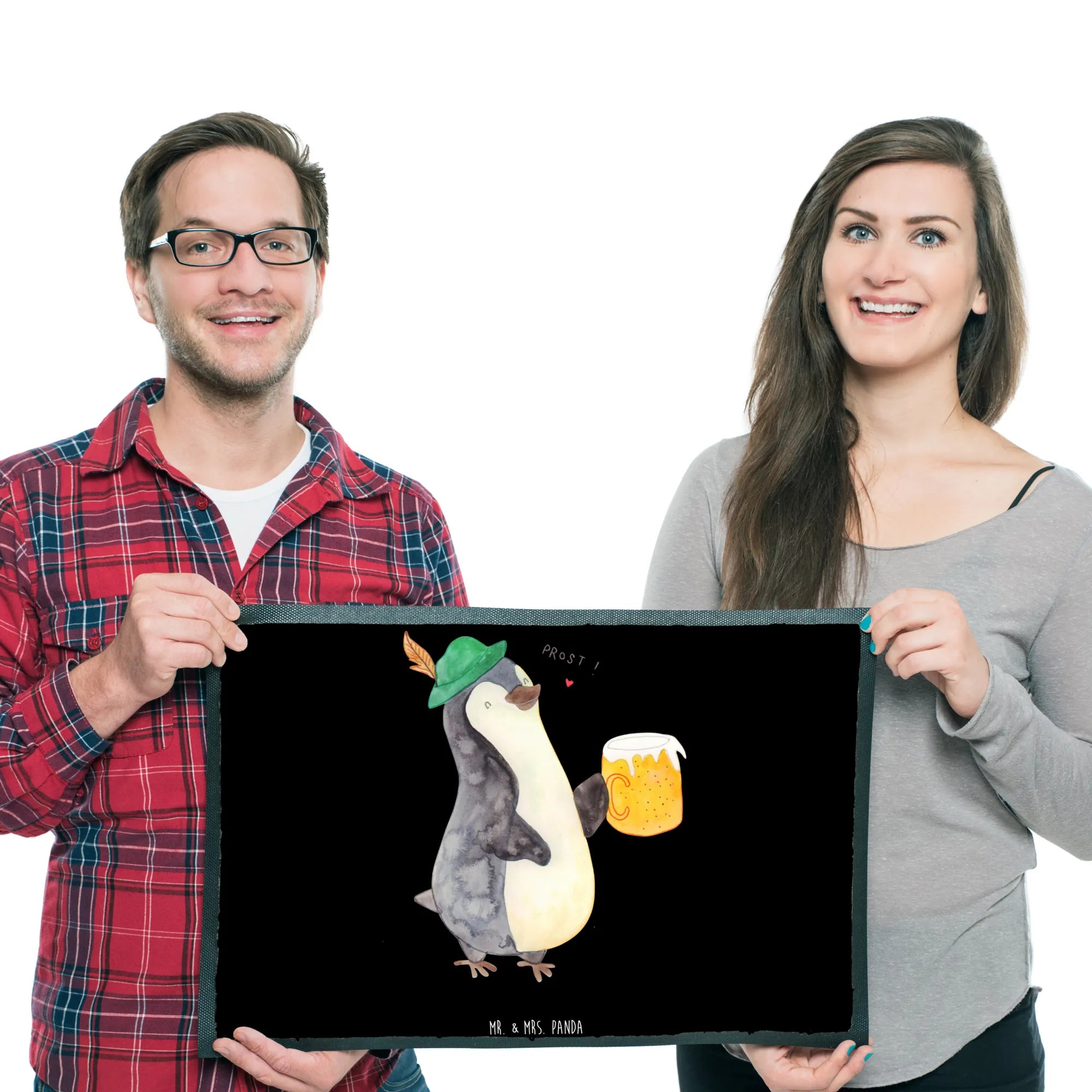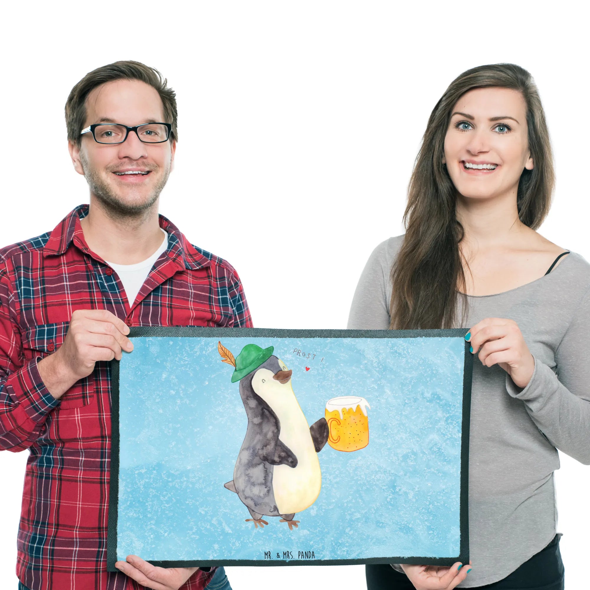 Introducing the adorable Mr. & Mrs. Panda Penguin Beer Doormat - a perfect blend of charm and functionality! This delightful doormat, part of our beloved Penguin Collection, showcases a cute penguin in traditional Bavarian attire proudly holding a Maß beer. It’s not just a door mat; it’s a warm welcome to your home that sets the mood for fun gatherings and cheerful get-togethers.