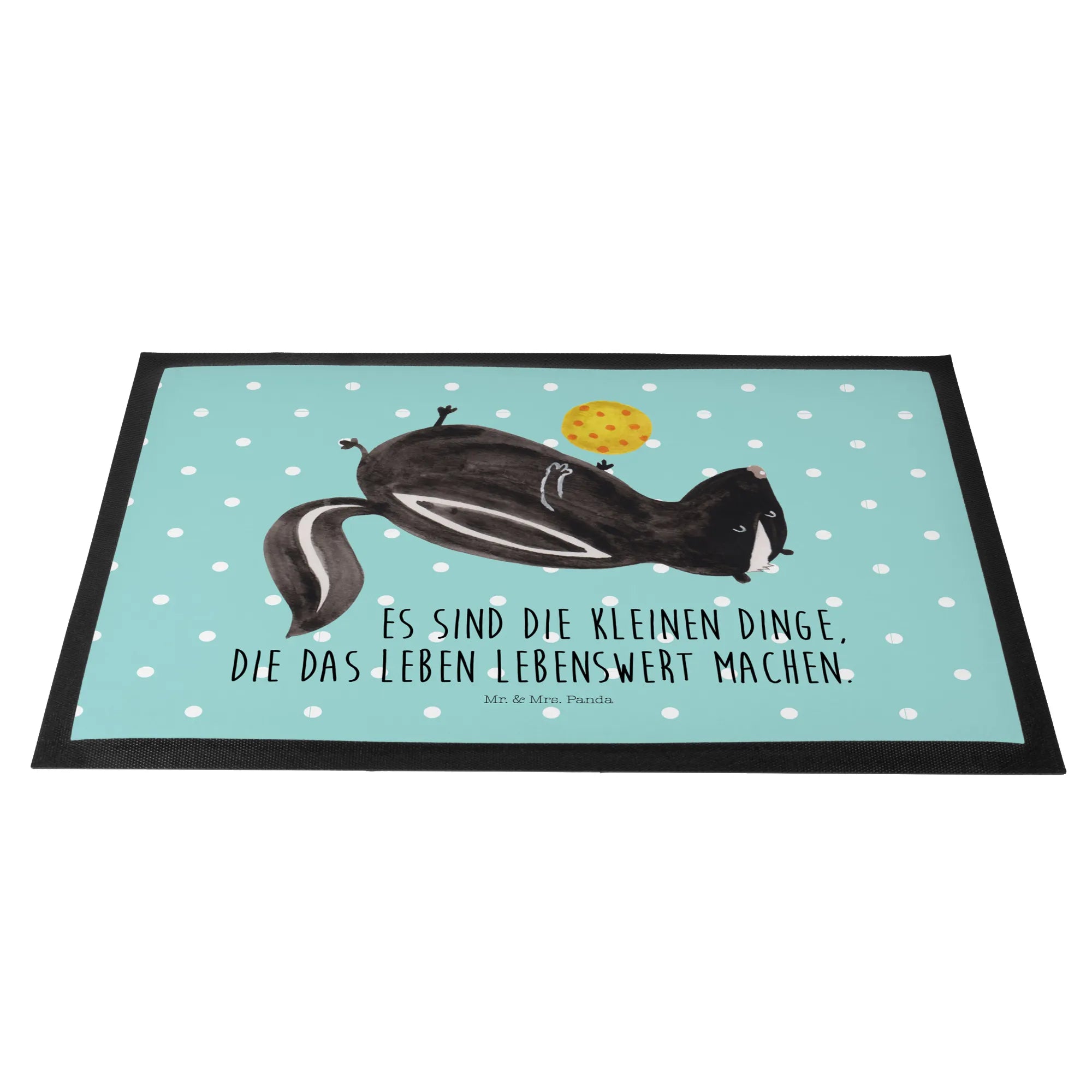 Imagine coming home to the sight of our lovingly designed skunk, happily playing with a ball, hand-painted by Mrs. Panda herself, bringing an instant smile to your face. Designed to add a touch of whimsy to your entrance, our doormat is made from high-quality materials, including a durable polyester felt surface and a robust rubber backing. This careful combination ensures that it withstands the elements, making it suitable for outdoor use while providing a soft feel underfoot when placed indoors.