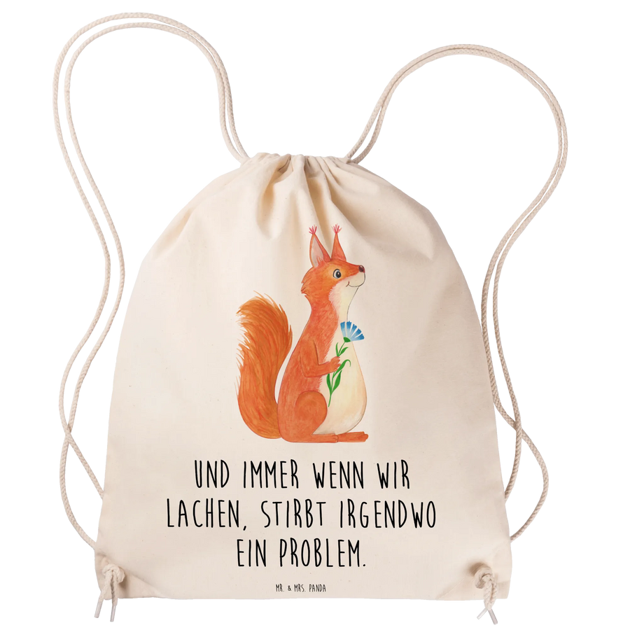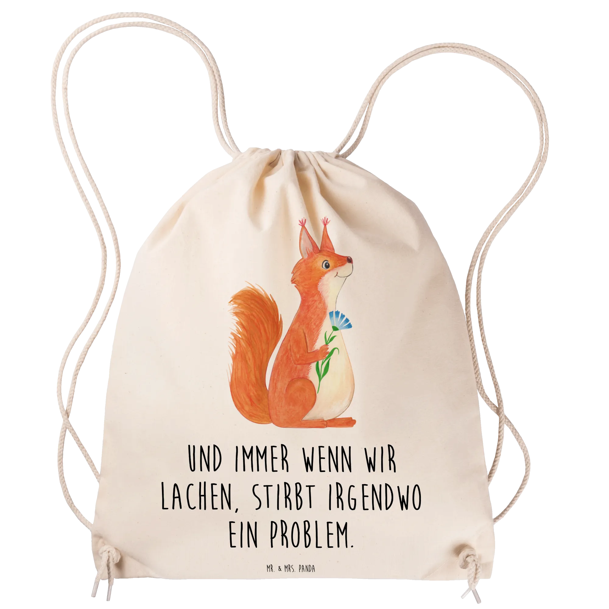 Drawstring bag Squirrel flower - with a saying - Transparent