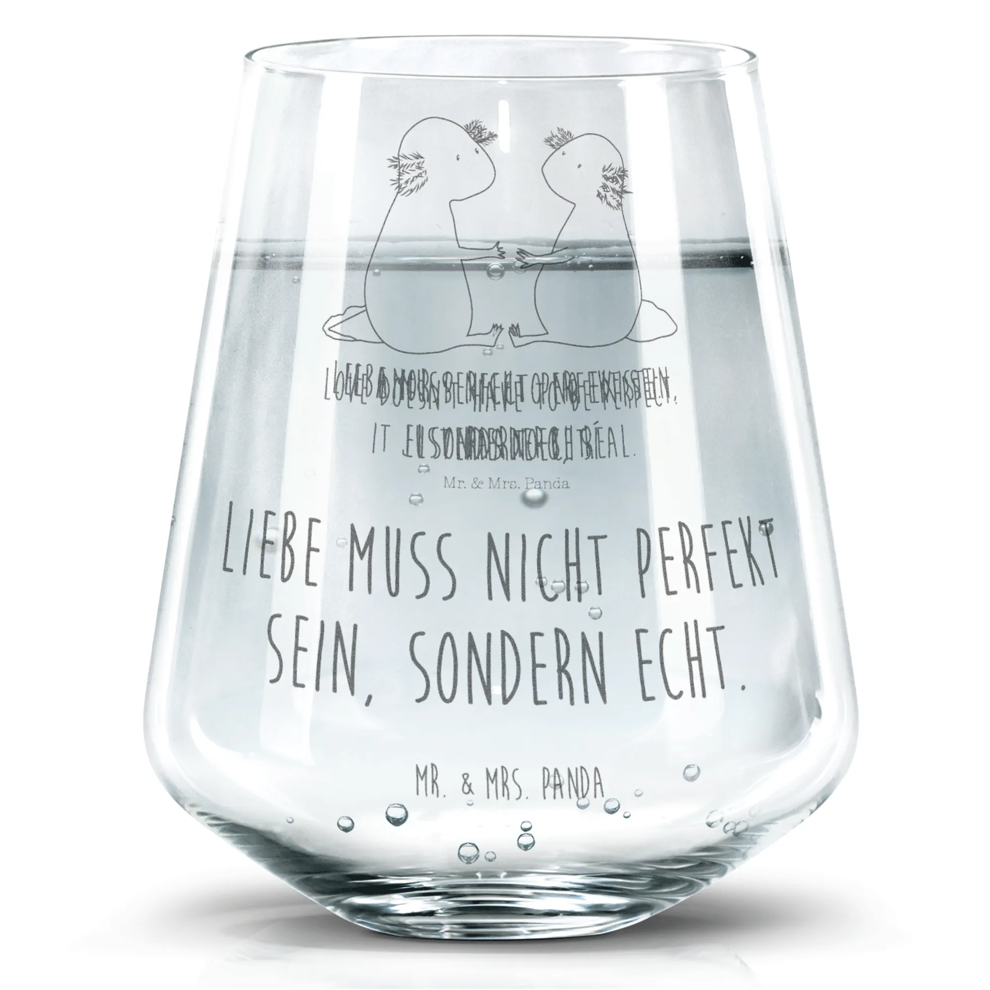 Entdecke das reizende Trinkglas 'Axolotl Liebe' aus der Kollektion Axolotl von Mr. & Mrs. Panda – das perfekte Geschenk für all jene, die das Besondere lieben! Mit einer Höhe von 103 mm und einem Durchmesser von 88 mm bietet dieses wunderschöne Trinkglas nicht nur eine Füllmenge von 400 ml, sondern auch eine glänzende Lasergravur der liebreizenden Axolotls, die dir sofort ein Lächeln ins Gesicht zaubert. Diese niedlichen Lurch-Lieblinge, die Händchen haltend daherkommen, verkörpern die wahre Bedeutung von Liebe: Sie ist nicht immer perfekt, aber dafür echt.