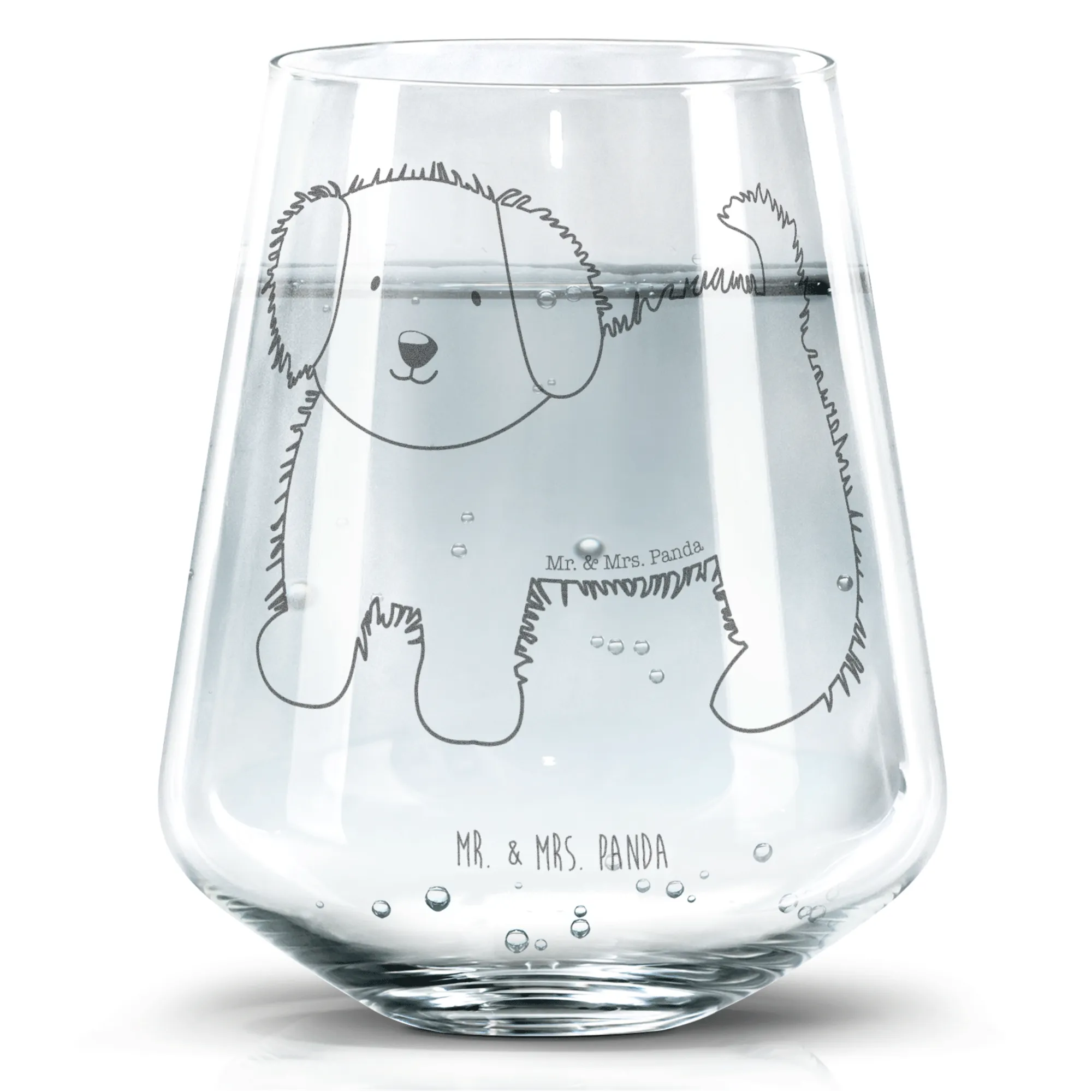 Das wunderschöne Trinkglas mit dem Motiv 'Hund flauschig' aus der exklusiven Hunde Kollektion von Mr. & Mrs. Panda ist mehr als nur ein einfaches Trinkglas – es ist ein echtes Highlight für jeden Hundeliebhaber! Mit einer Füllmenge von 400 ml eignet sich dieses stilvolle Glas hervorragend für Wasser, Saft oder Deinen Lieblingsdrink.