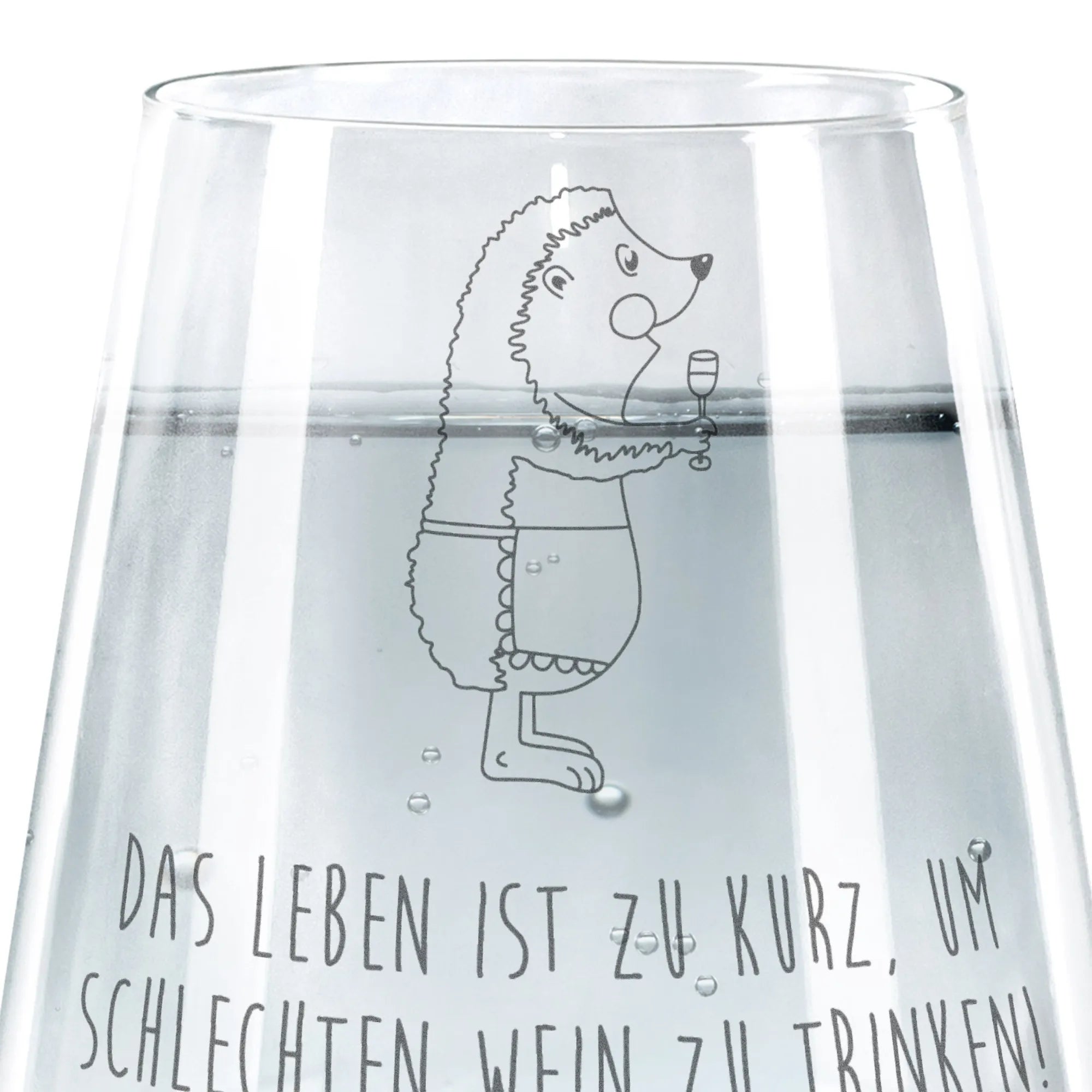Das wunderschöne Trinkglas Igel mit Wein von Mr. & Mrs. Panda ist einfach das perfekte Geschenk für Weinliebhaber und alle, die das Leben in vollen Zügen genießen möchten.