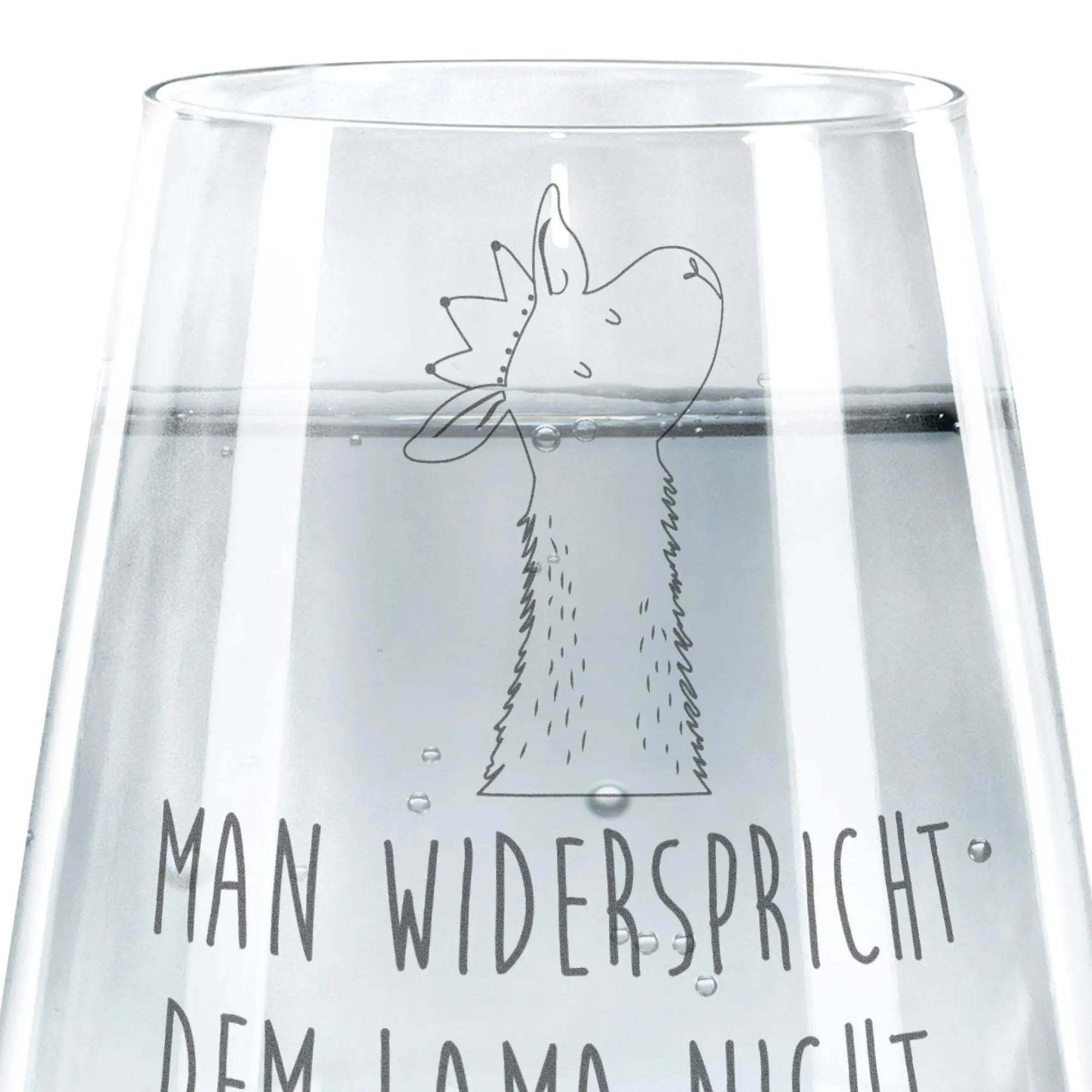 Das Trinkglas Lamakopf König aus der exklusiven Lama-Kollektion von Mr. & Mrs. Panda ist nicht nur ein stylisches Accessoire, sondern auch das perfekte Geschenk für alle Lama-Fans und Tierliebhaber! Mit einer hochwertigen Lasergravur, die ein süßes Lama mit einer Krone zeigt und den Spruch "Man widerspricht dem Lama nicht." beinhaltet, wird dieses Glas zum echten Blickfang auf jedem Tisch.