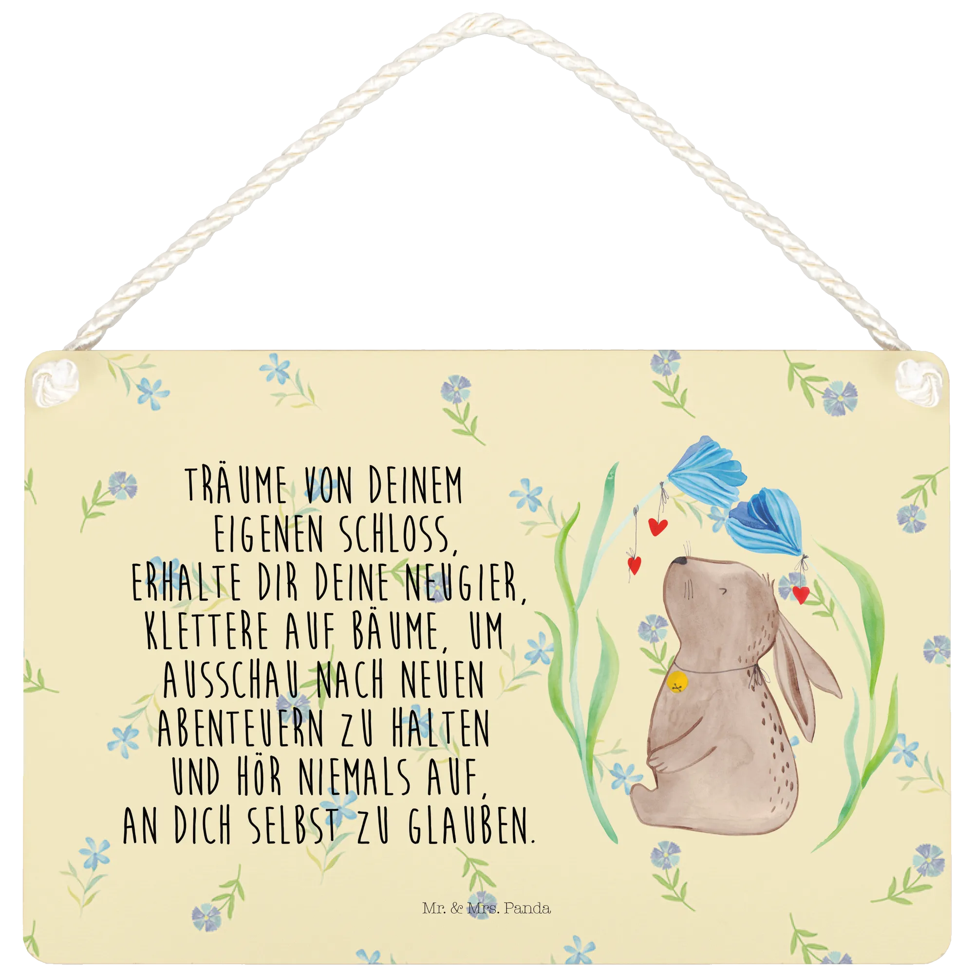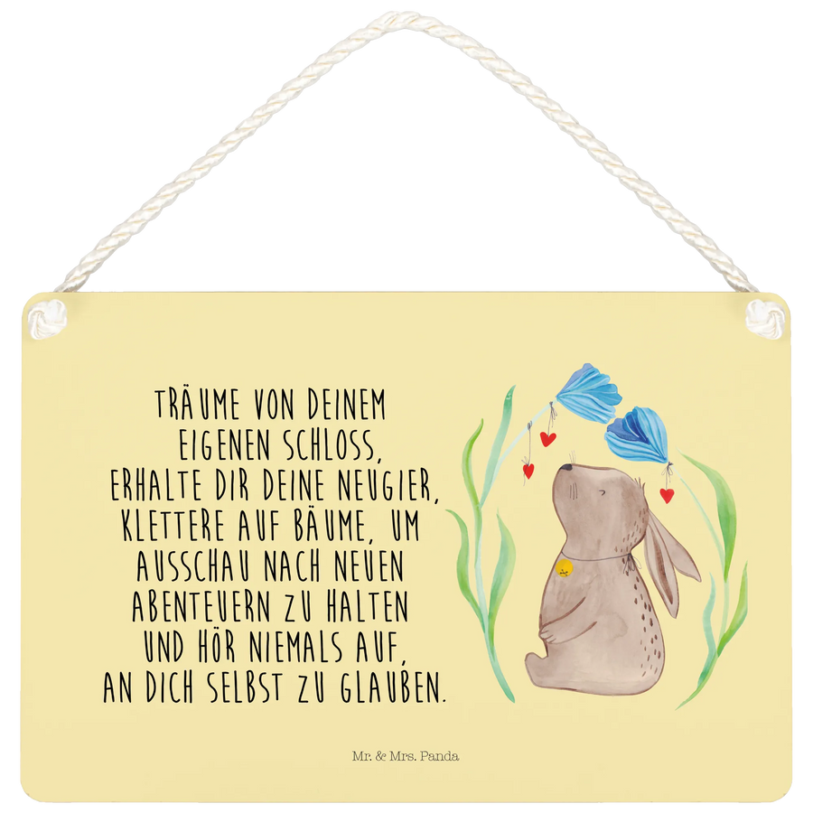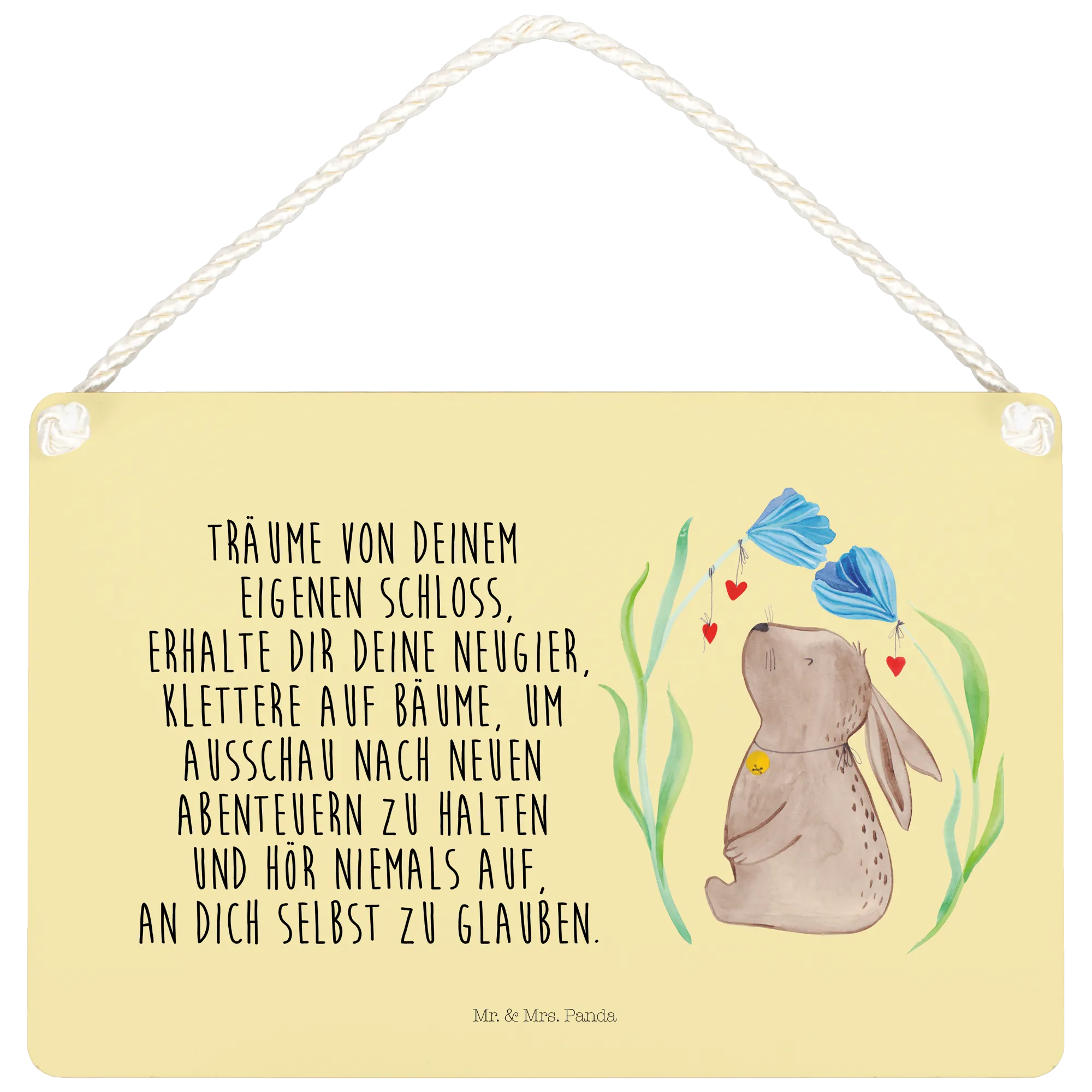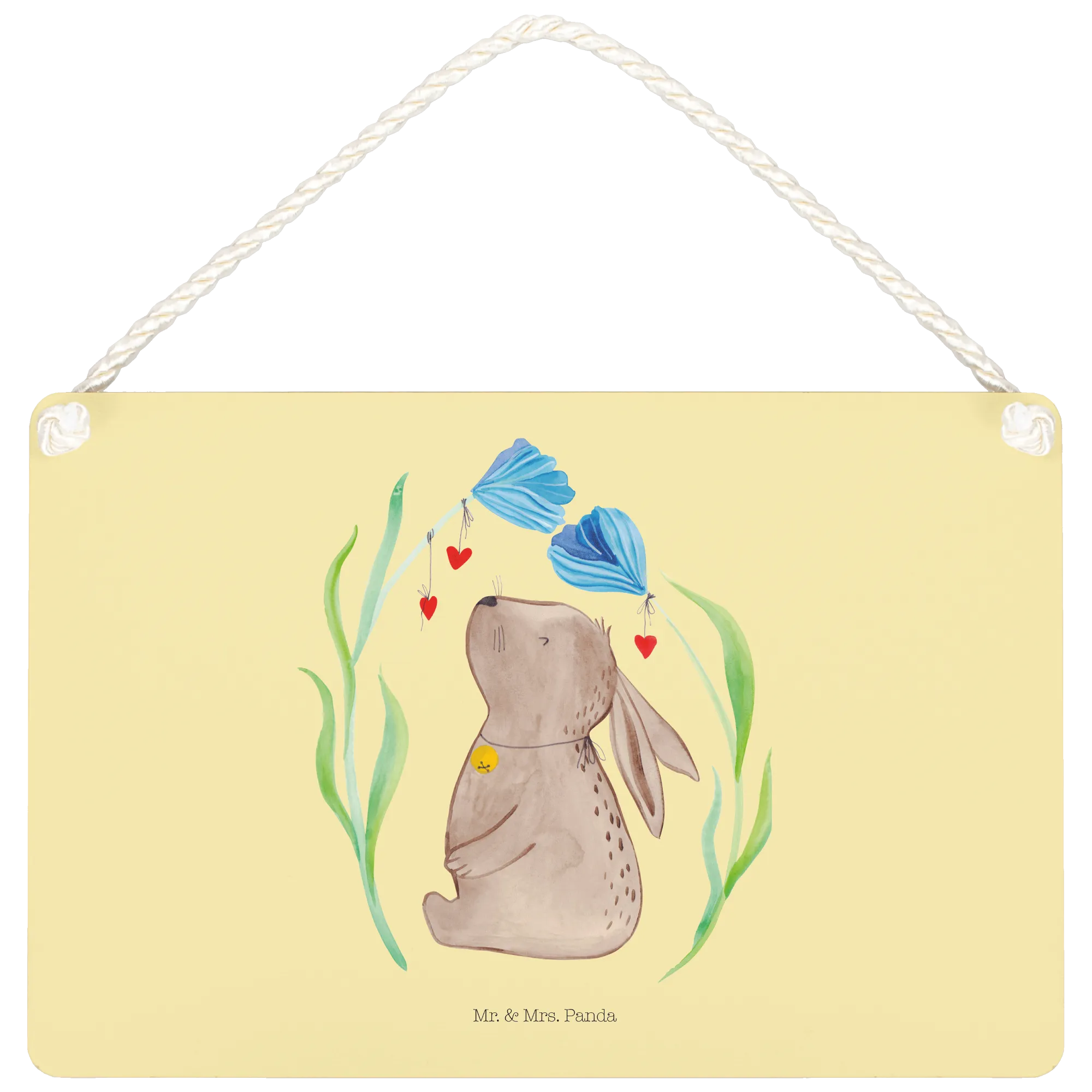 Decorative sign Hare flower - DIN A5 - with saying - Pastel Yellow