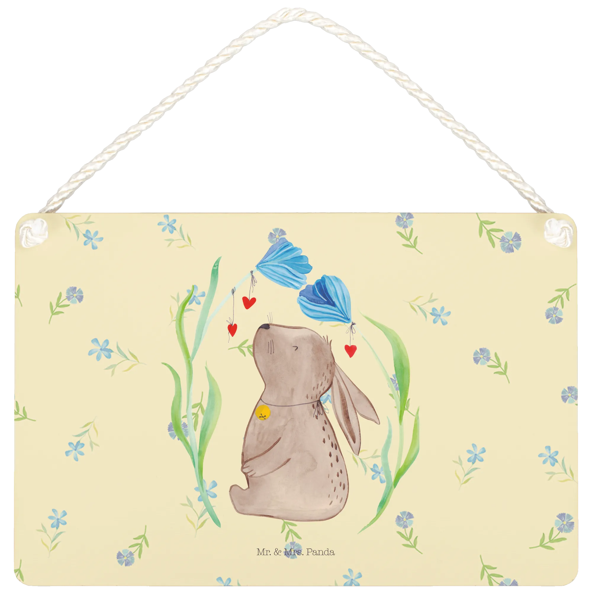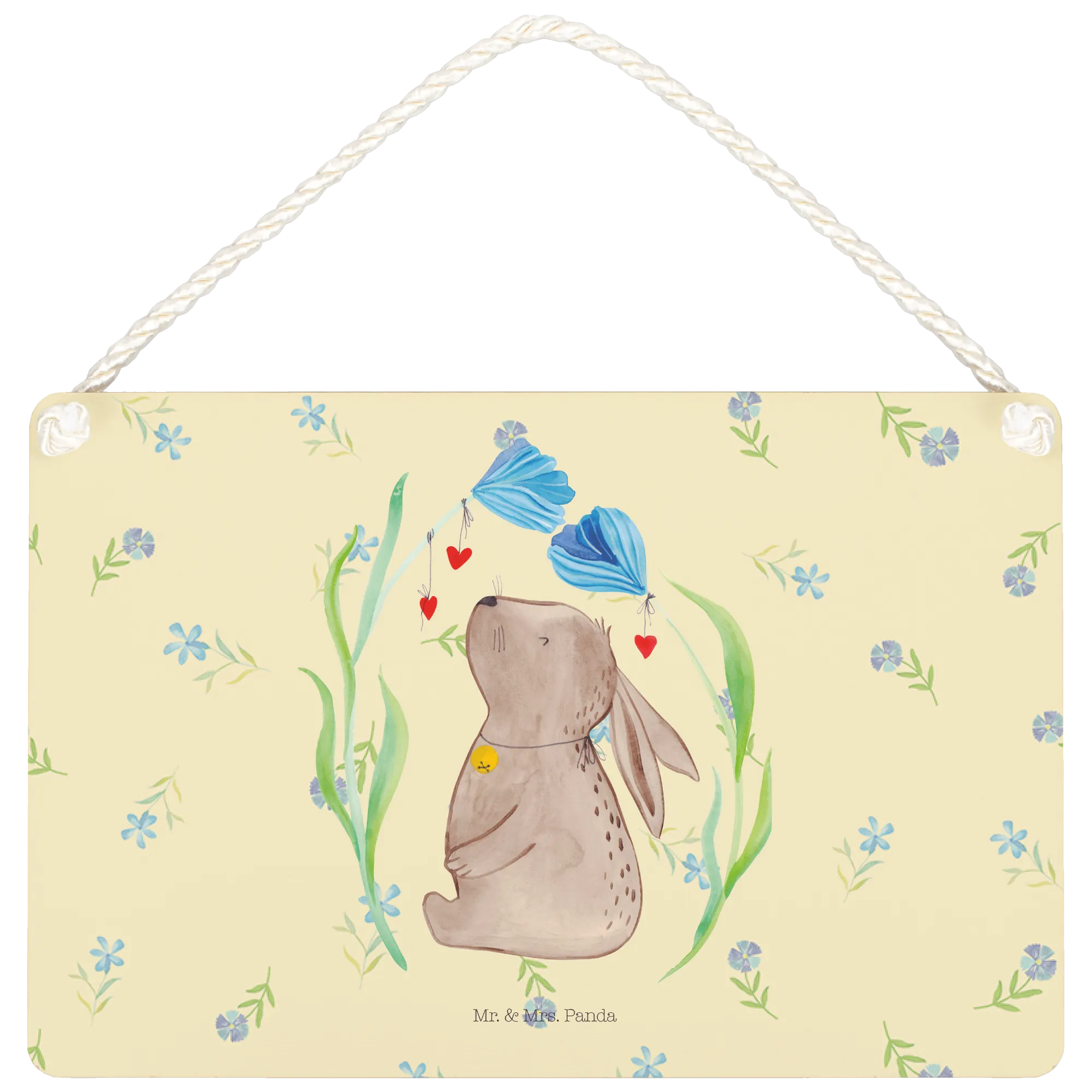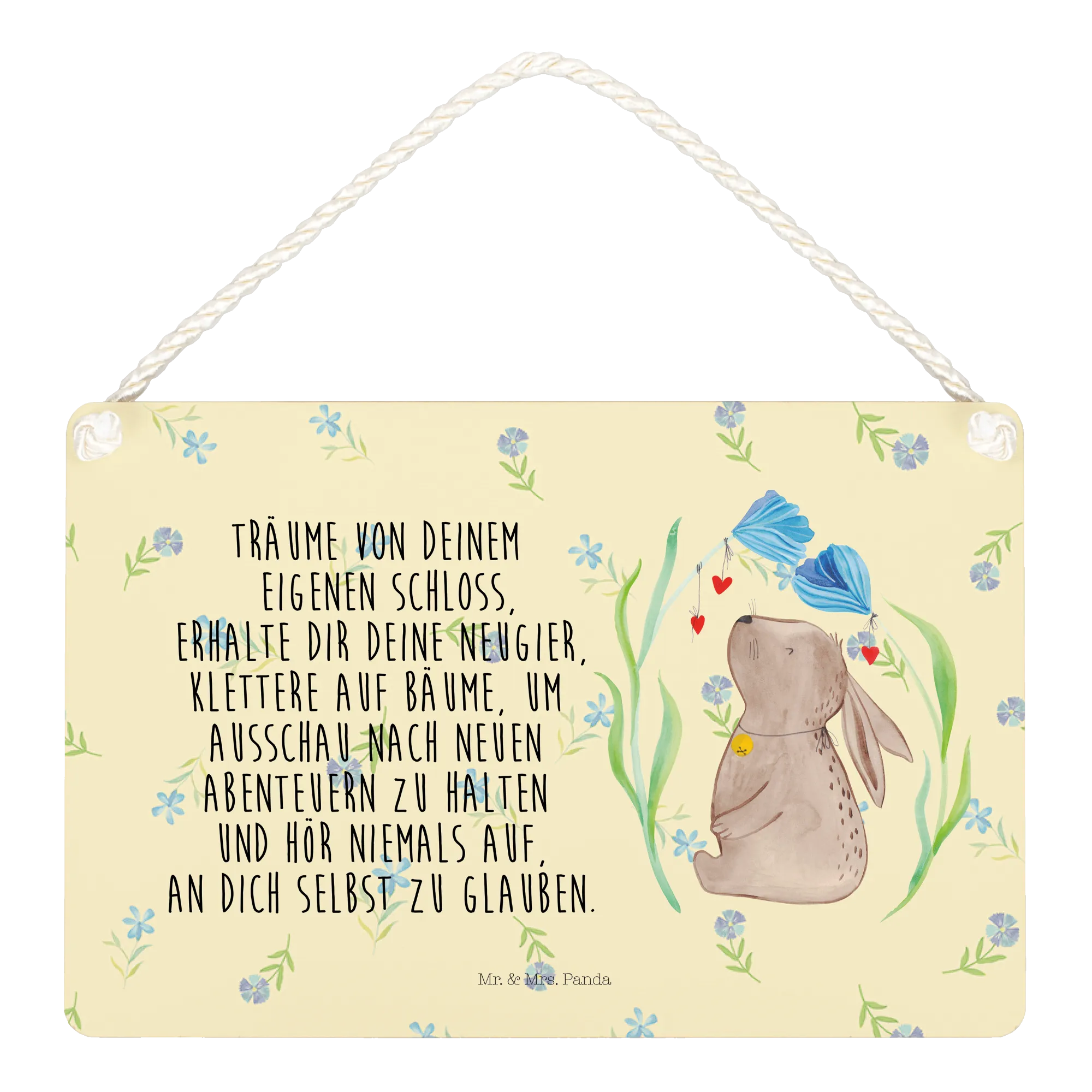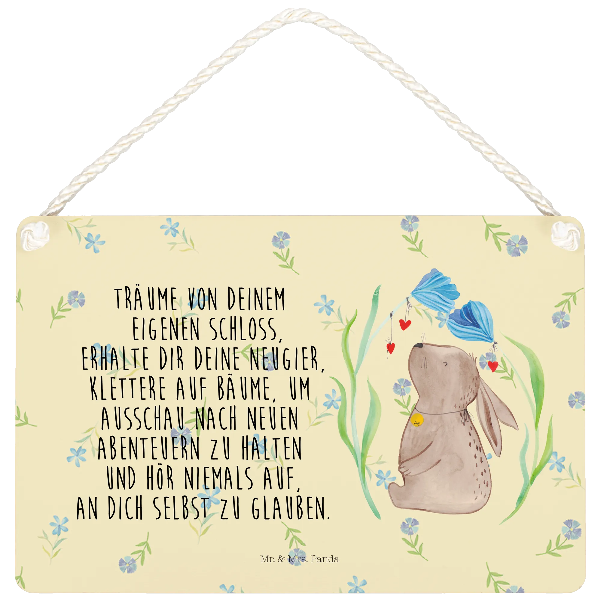Decorative sign Hare flower - DIN A5 - with saying - Pastel Yellow