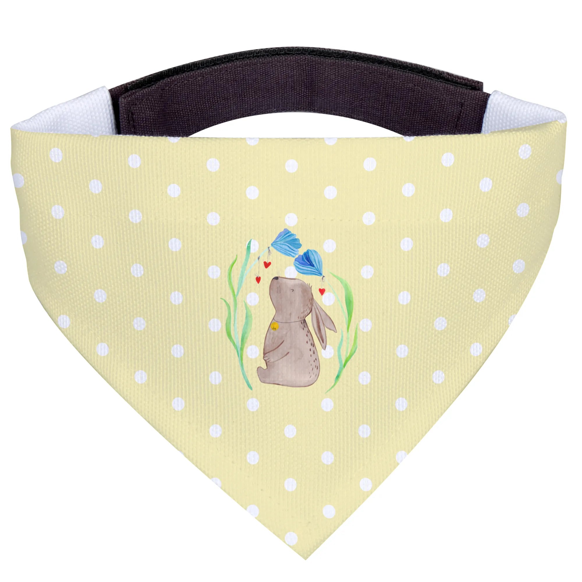 Dog neckerchief Hare flower - Dog neck scarf M - with saying - Yellow Pastel