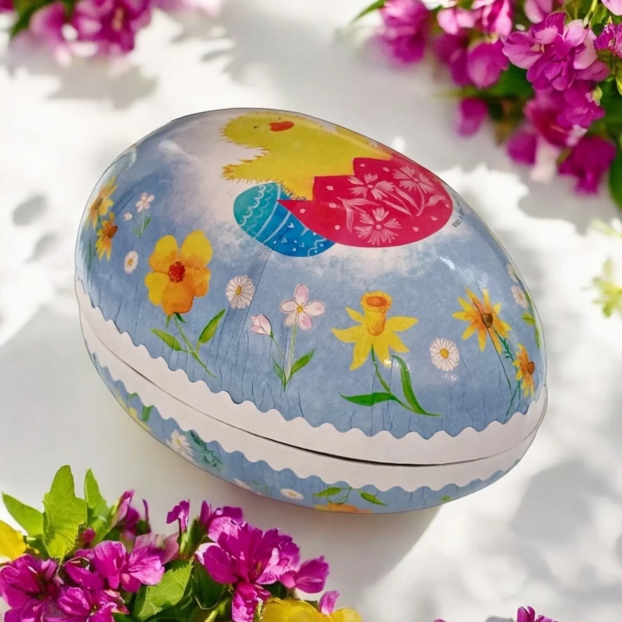 the production takes 5-6 weeks. A total of 12 steps are required before the finished egg leaves the factory. From the thick cardboard, which is printed and folded to keep the colours brilliant forever, to the drying time of several days, many people work with love to form perfect Easter eggs for you.