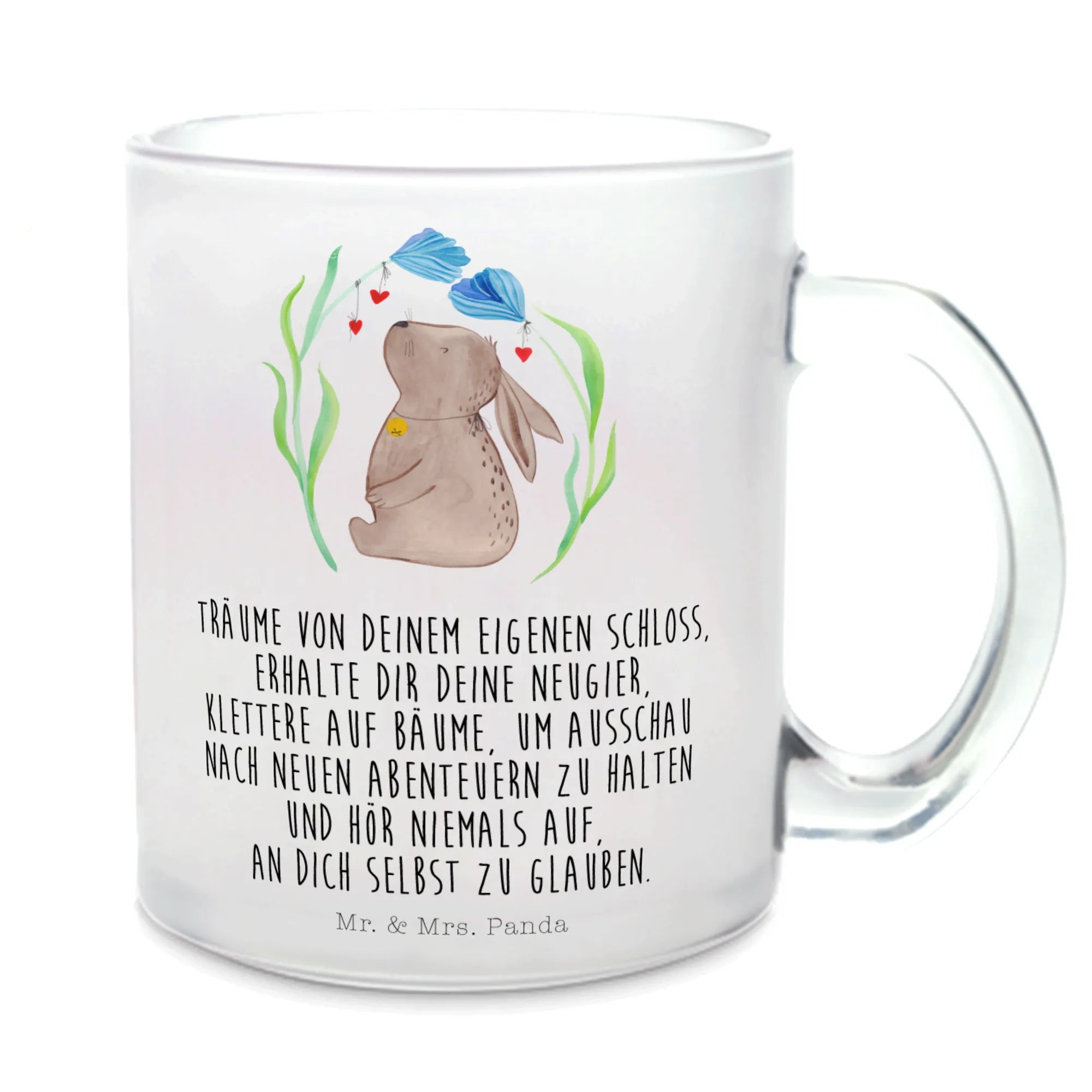 Glass tea cup Hare flower - with saying