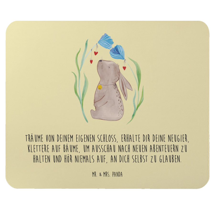 Mouse mat Hare flower - with saying - Yellow Pastel