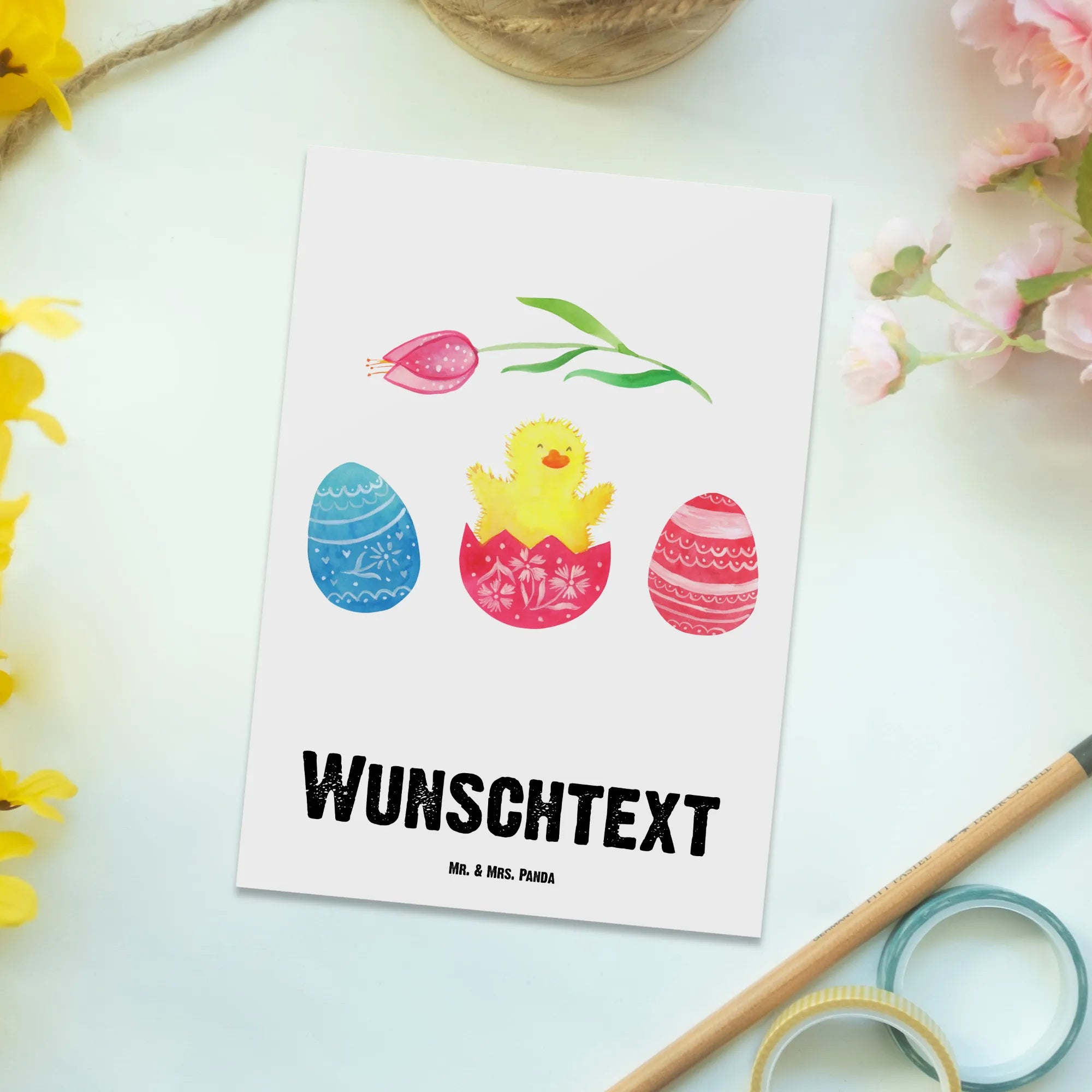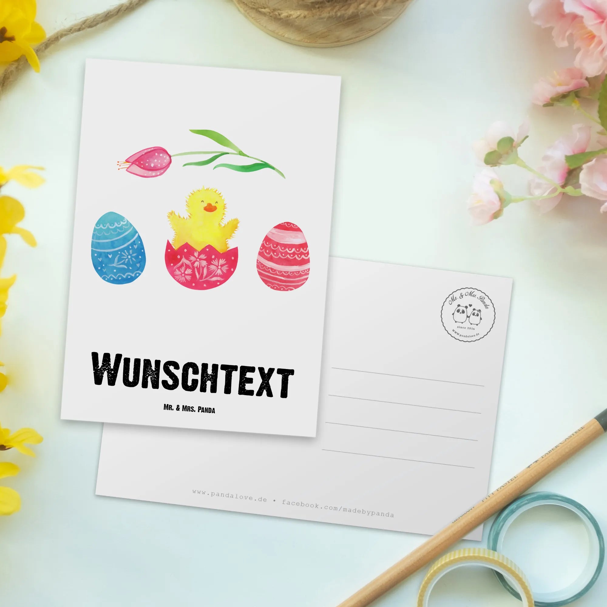 As spring awakens, a small, fluffy chick jubilantly hatches from its shell, embodying the joy and excitement of the season. With bright eyes and a playful spirit, this adorable little creature reminds us that Easter is not just a day but an entire season of renewal and splendid surprises. The slogan, 'Hurra, die Frühlingsgefühle sind da! Frohe Ostern!' captures this essence perfectly. It invites you to embrace the warmth of this time, filled with blossoming flowers, chirping birds, and the unmistakable fun of Easter eggs hidden around for joyful hunts. Whether you’re sending Easter greetings or sharing best wishes, this motif will surely brighten anyone's day, reminding us that happiness can be found in the smallest of things.