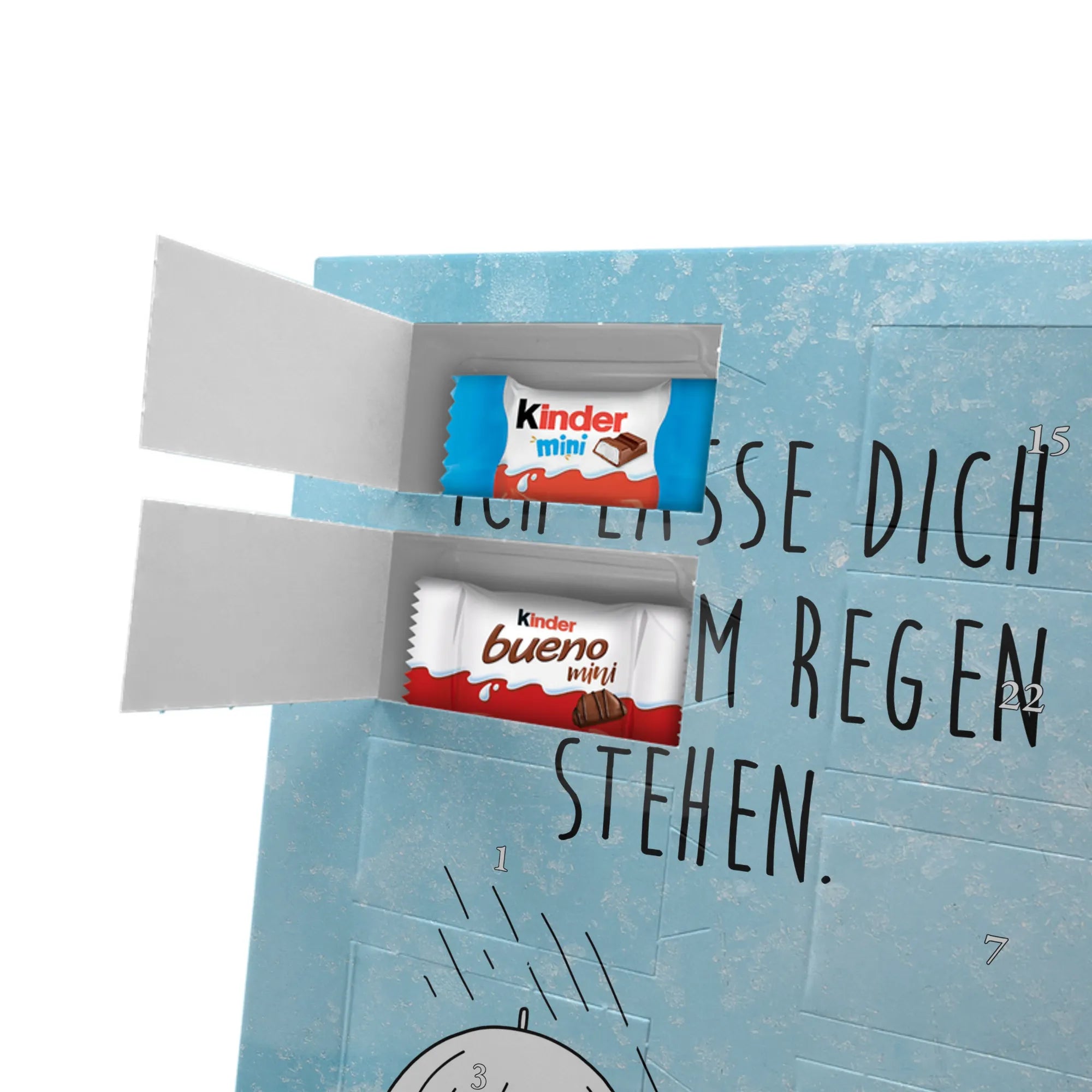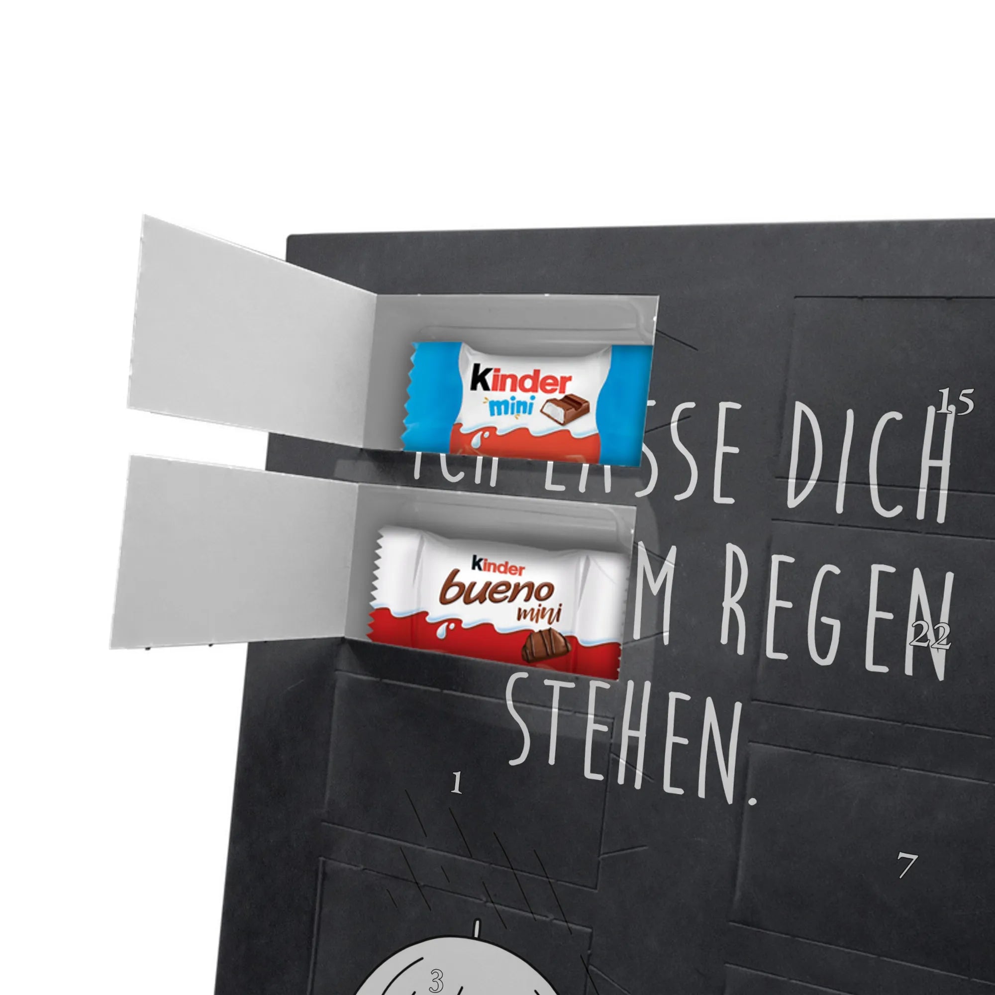 Unser personalisierten Schoko Foto Adventskalender ist ein echtes Highlight in der Adventszeit – handlich, individuell und voller süßer Überraschungen. Du personalisierst die Vorderseite mit deinem liebsten Foto und wir kombinieren es mit liebevollen Motiven und Sprüchen von Mr. & Mrs. Panda. Bitte achte auf eine ausreichende Bildauflösung und einen passenden Bildausschnitt, damit das Druckergebnis gestochen scharf ist. Lade nur Bilder hoch, deren Rechte du besitzt oder bei denen du die Erlaubnis hast, besonders wenn Personen darauf zu sehen sind. Wichtig: Fotos werden nicht retuschiert oder zugeschnitten; personalisierte Foto-Artikel sind vom Widerruf ausgeschlossen. Der Kalender besticht durch brillante Druckqualität und eine seidenmatte Oberflächenveredelung sowie bedruckte Seitenflächen. Maße: 355 mm x 245 mm x 11 mm. Du kannst ihn entweder aufstellen oder an die Wand hängen. Gefüllt ist der Adventskalender mit kinder® Schokolade, inklusive kinder® Schoko-Bons, kinder® Bueno mini und kinder® Schokolade mini. Ein liebevolles, persönliches Geschenk für Kinder, Freunde oder die bessere Hälfte – individuell, süß und mit dem typischen Mr. & Mrs. Panda Charme.